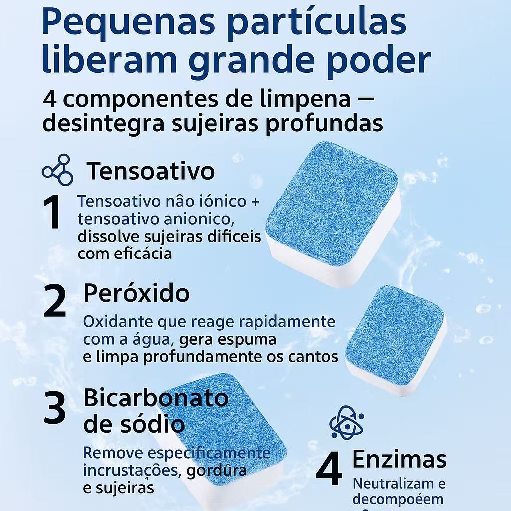 Kit 12 Limpador de máquina de lavar, comprimido efervescente sólido para remover manchas