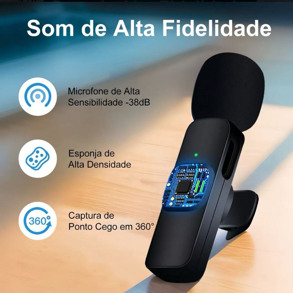 Microfone Celular Lapela Sem Fio K9 para iphone e Tipo c Profissional Karaokê 2 Microfone