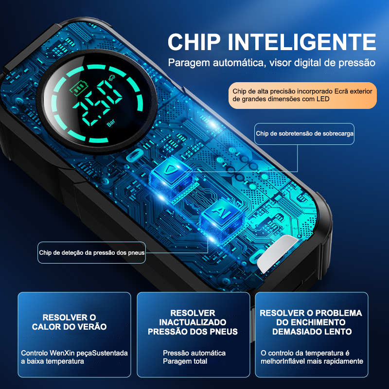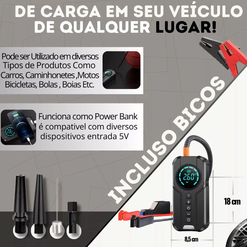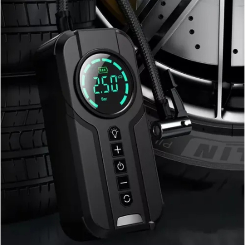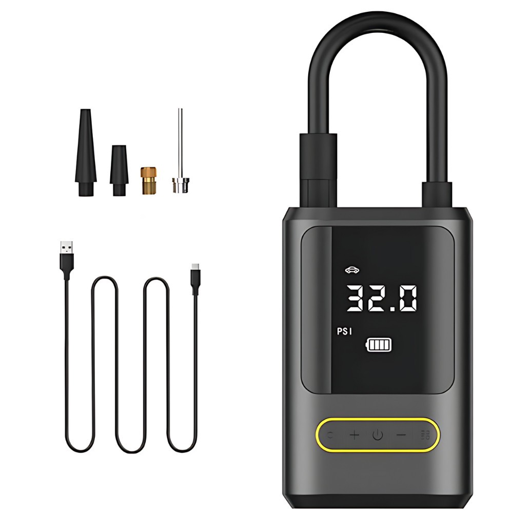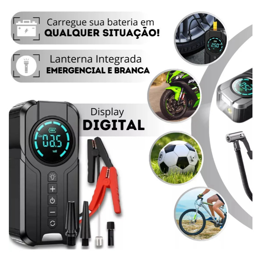 Inflador Elétrico Digital com Display e Bicos Compressor Portátil Veicular Power Bank 5V