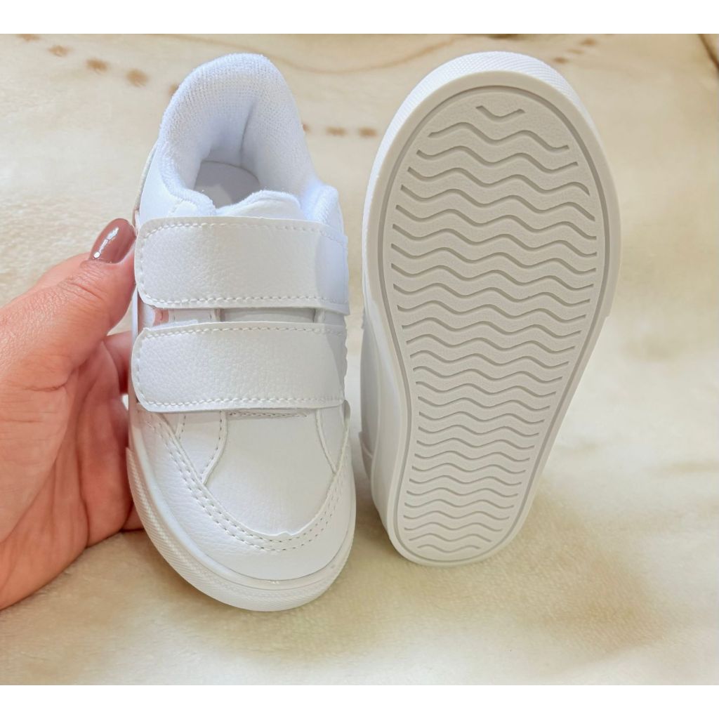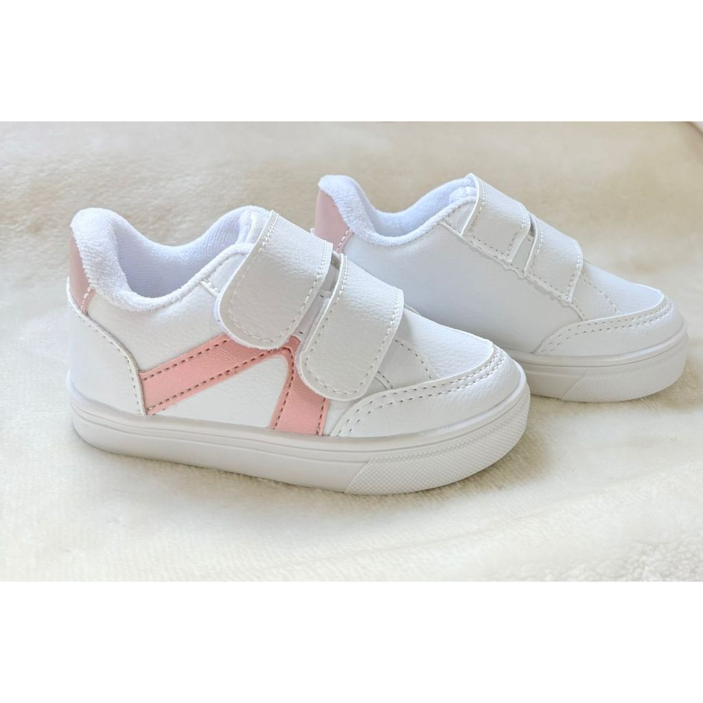 Tênis infantil menina Branco com rose metálico fechamento fácil confortável e estiloso casual