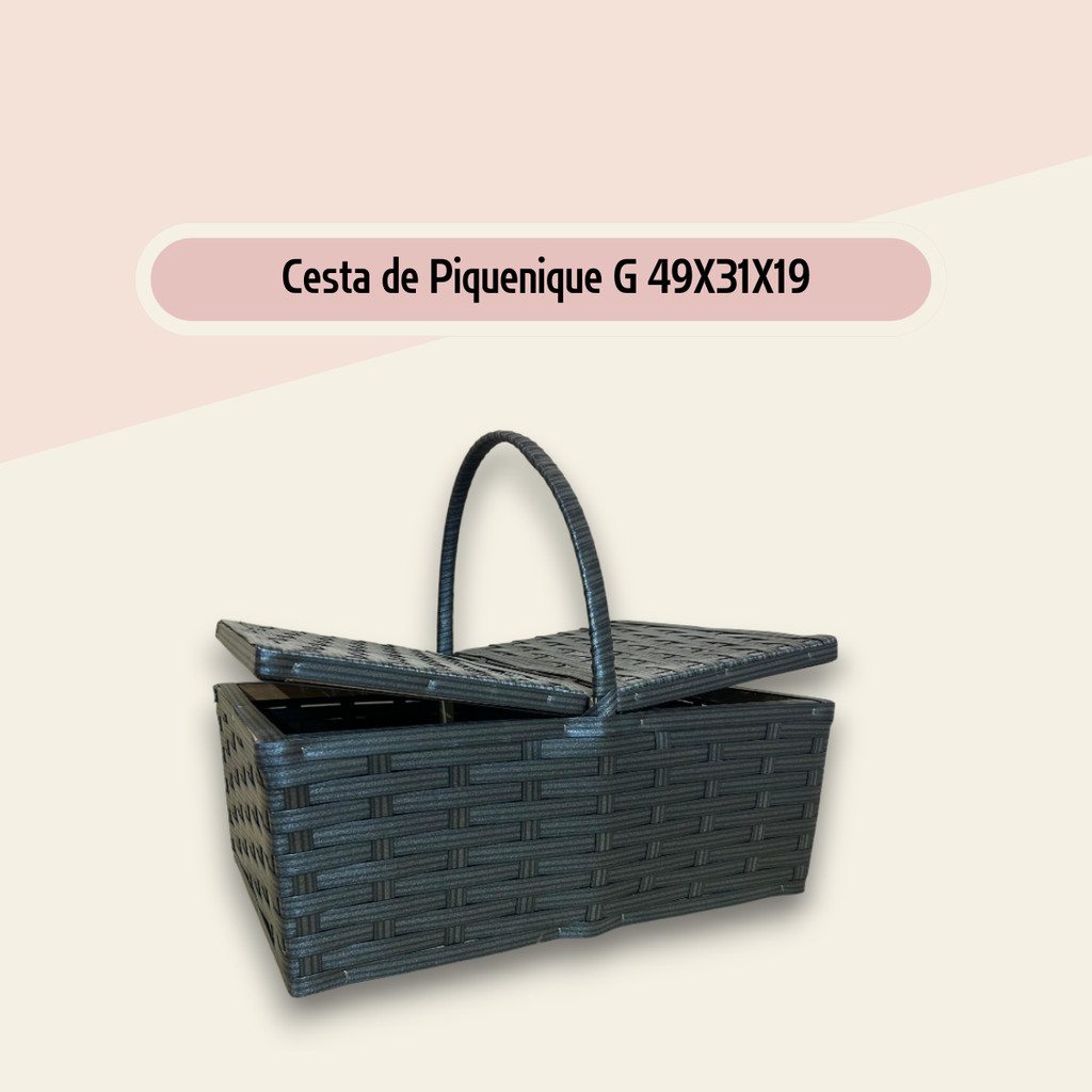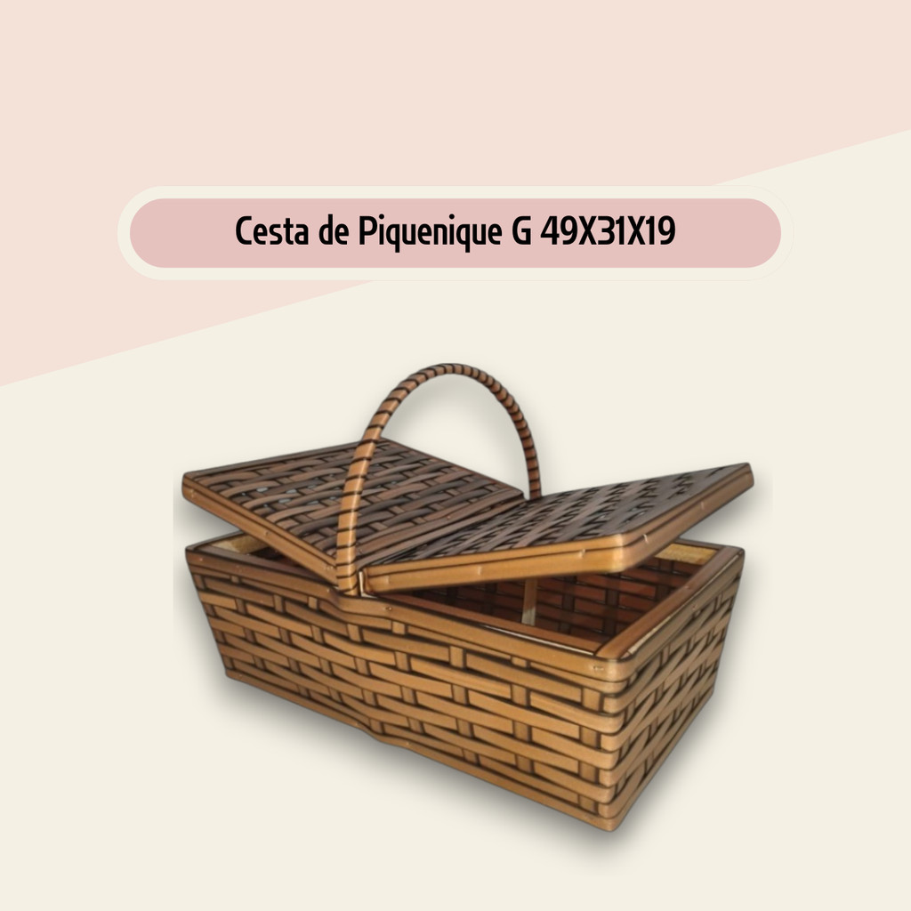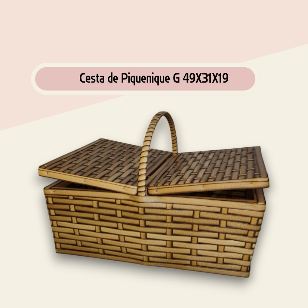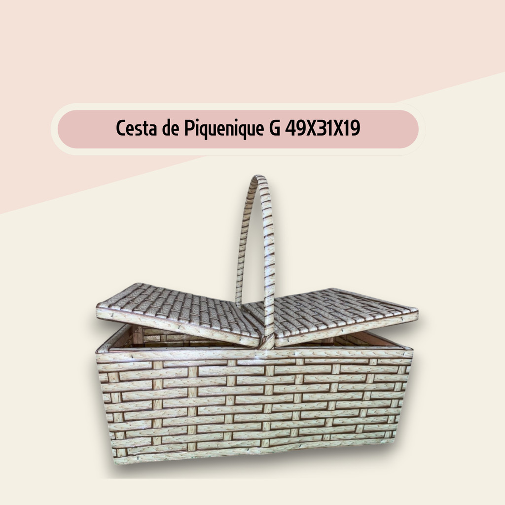 Cesta de Piquenique Fibra Sintética Grande 49x31x19 Café da Manhã Luxo Resistente (Vime Sintético)