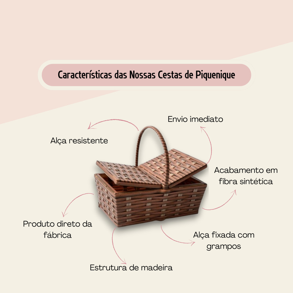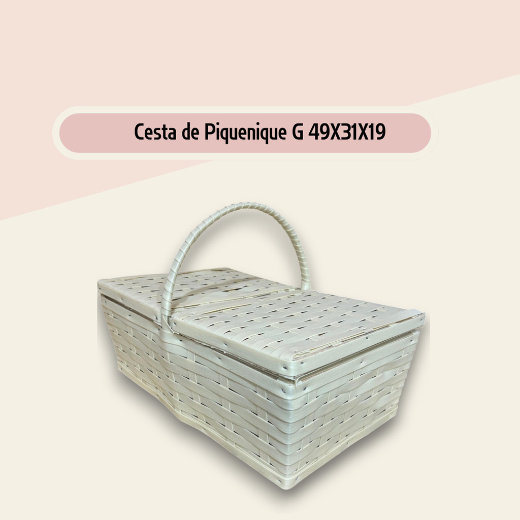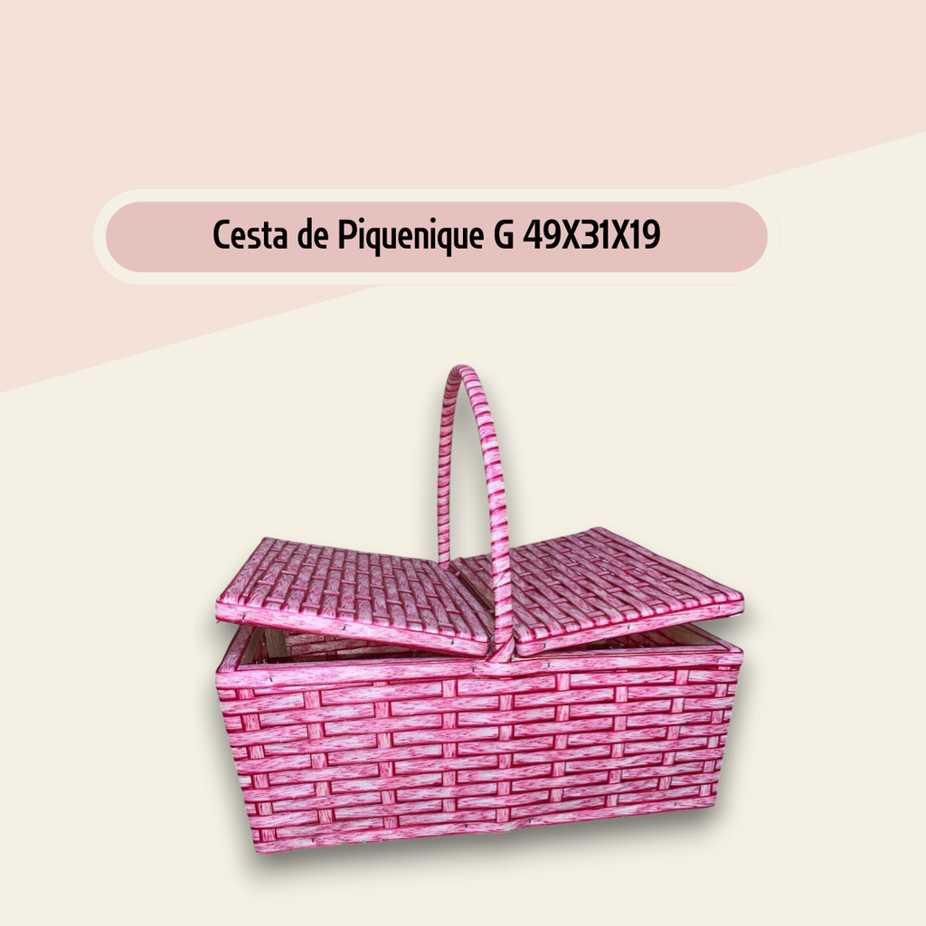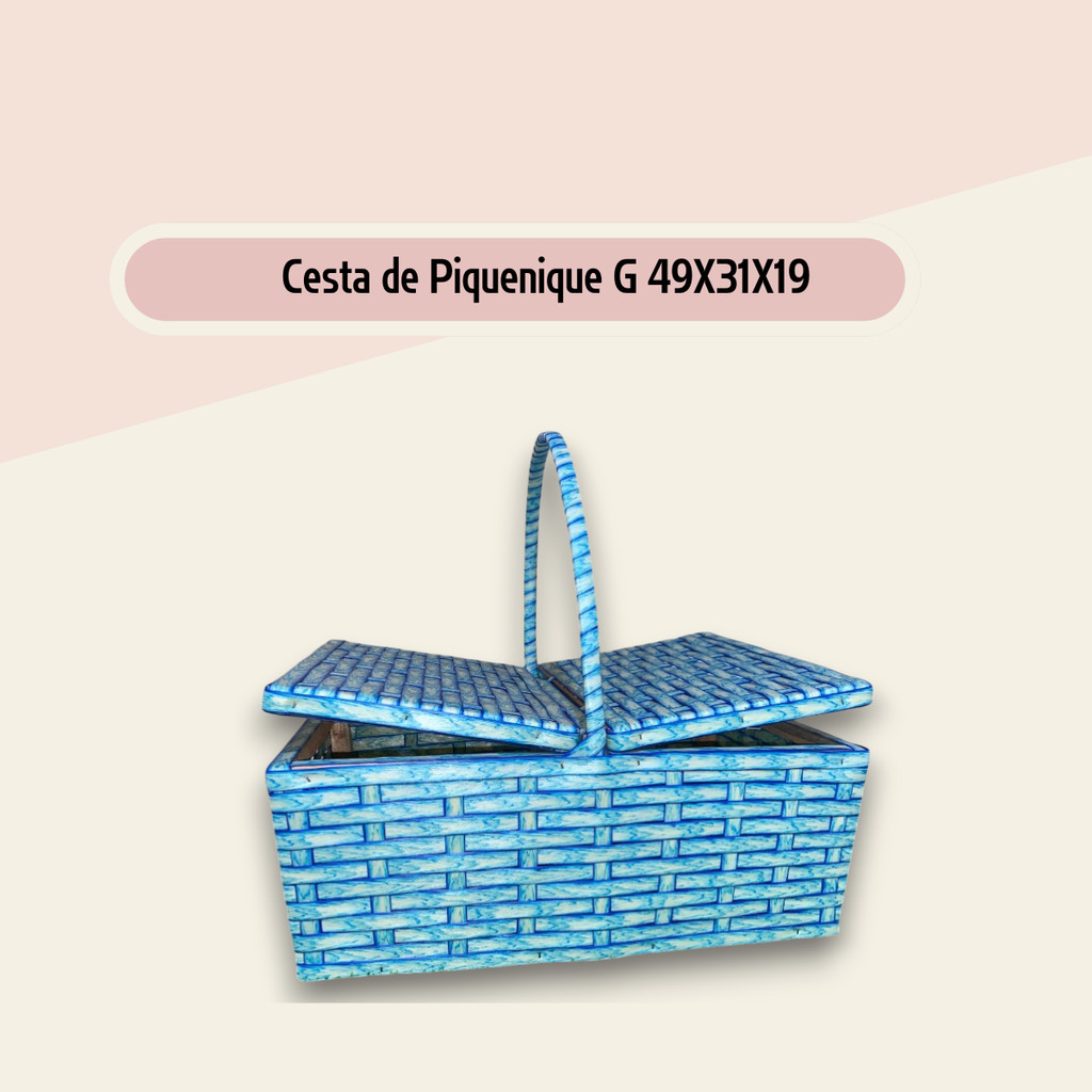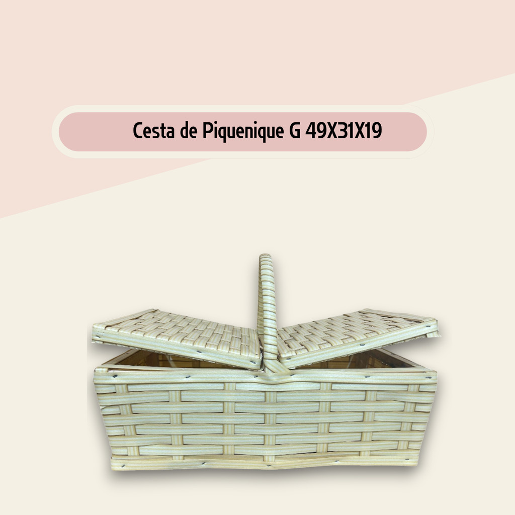 Cesta de Piquenique Fibra Sintética Grande 49x31x19 Café da Manhã Luxo Resistente (Vime Sintético)