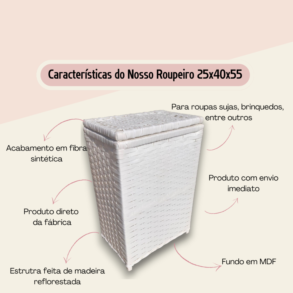 Cesto de Roupa Suja Fibra Sintética Roupeiro Organizador de Brinquedos Banheiro 25x40x55(Já Montado)