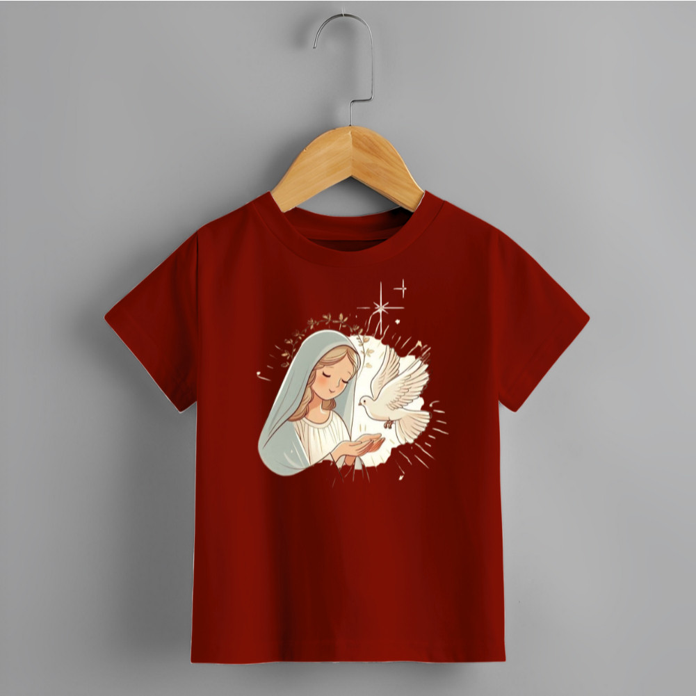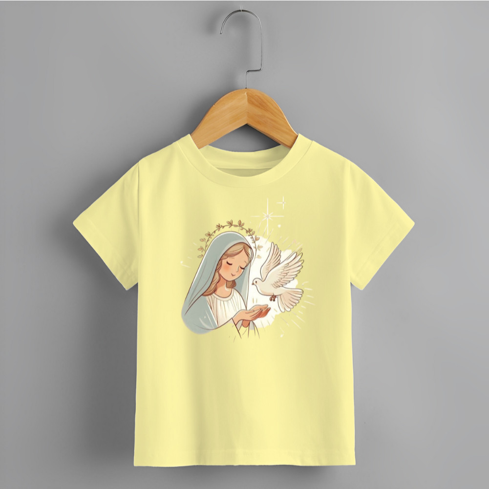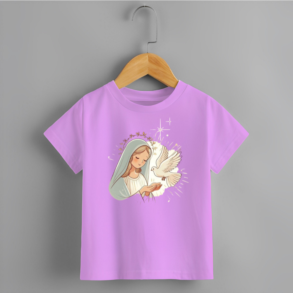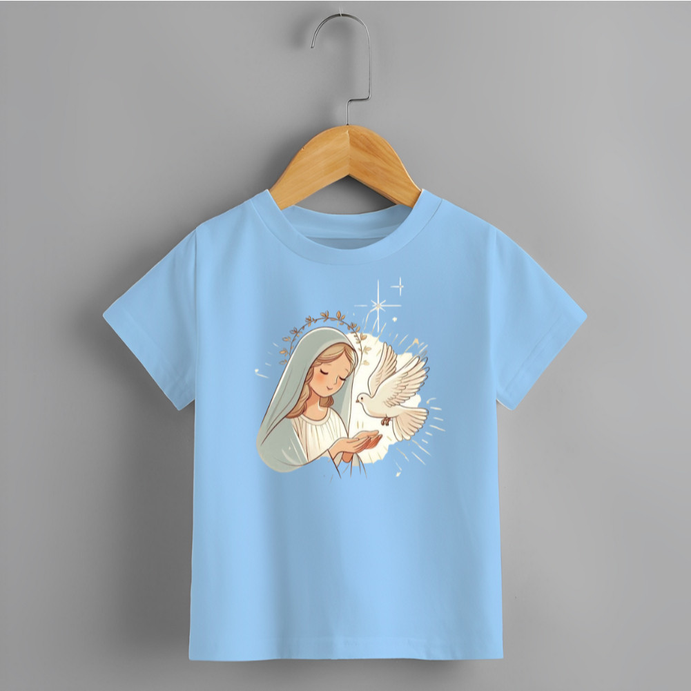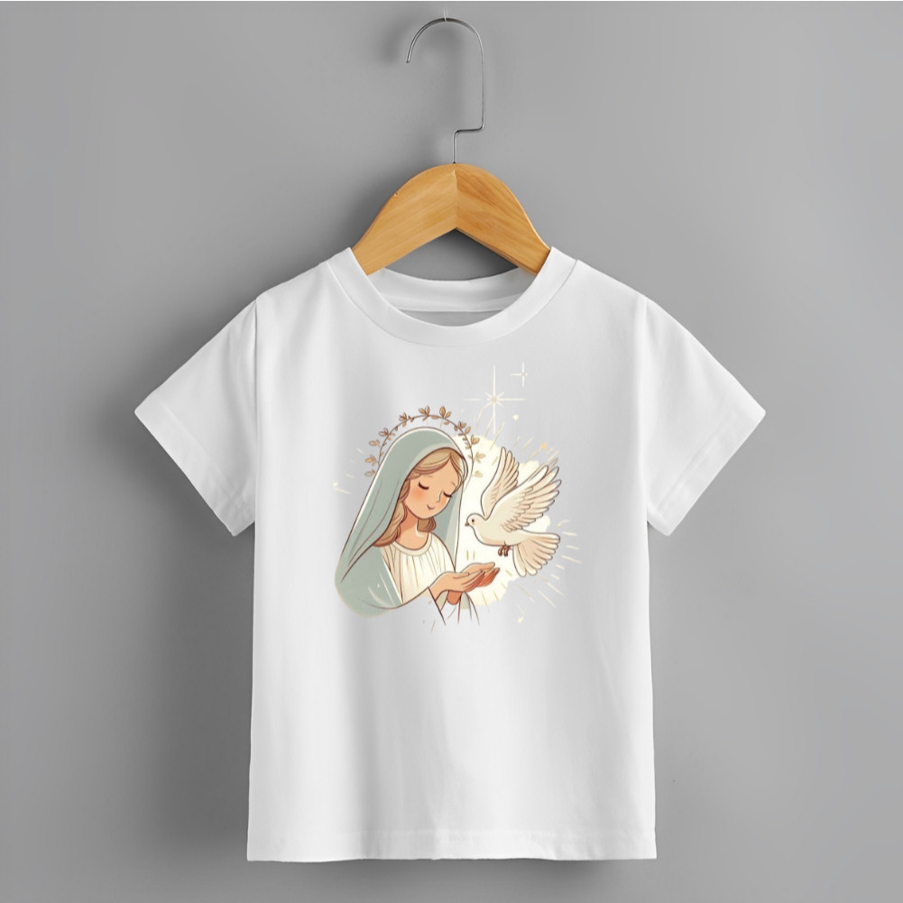 Blusa Infantil Camiseta Unissex Estamp Santinha Pombinha Branca Novidade