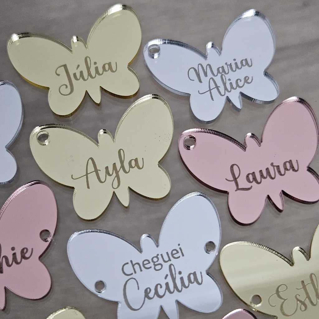 TAGS de Nomes Apliques Acrílico Para Laços E Tiara Borboleta 3,4cm