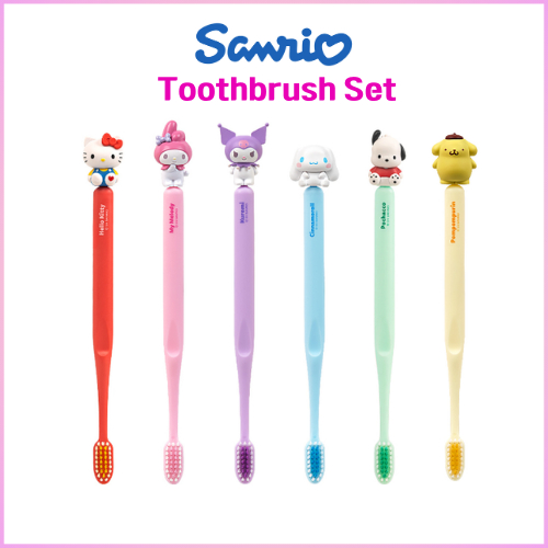 Conjunto De Escova De Dentes Com Figura De Personagens Sanrio/Hello Kitty/My Melody/Kuromi/Cinnamoroll/Pochacco PomPompu