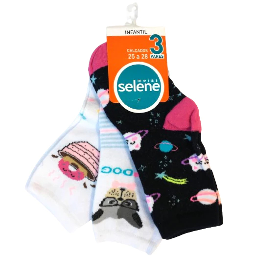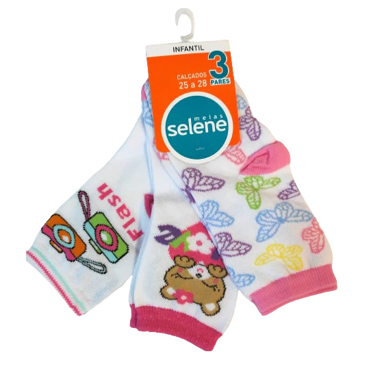 Kit 3 Par Meia Soquete Tamanho 25 a 28 Infantil Menina Selene
