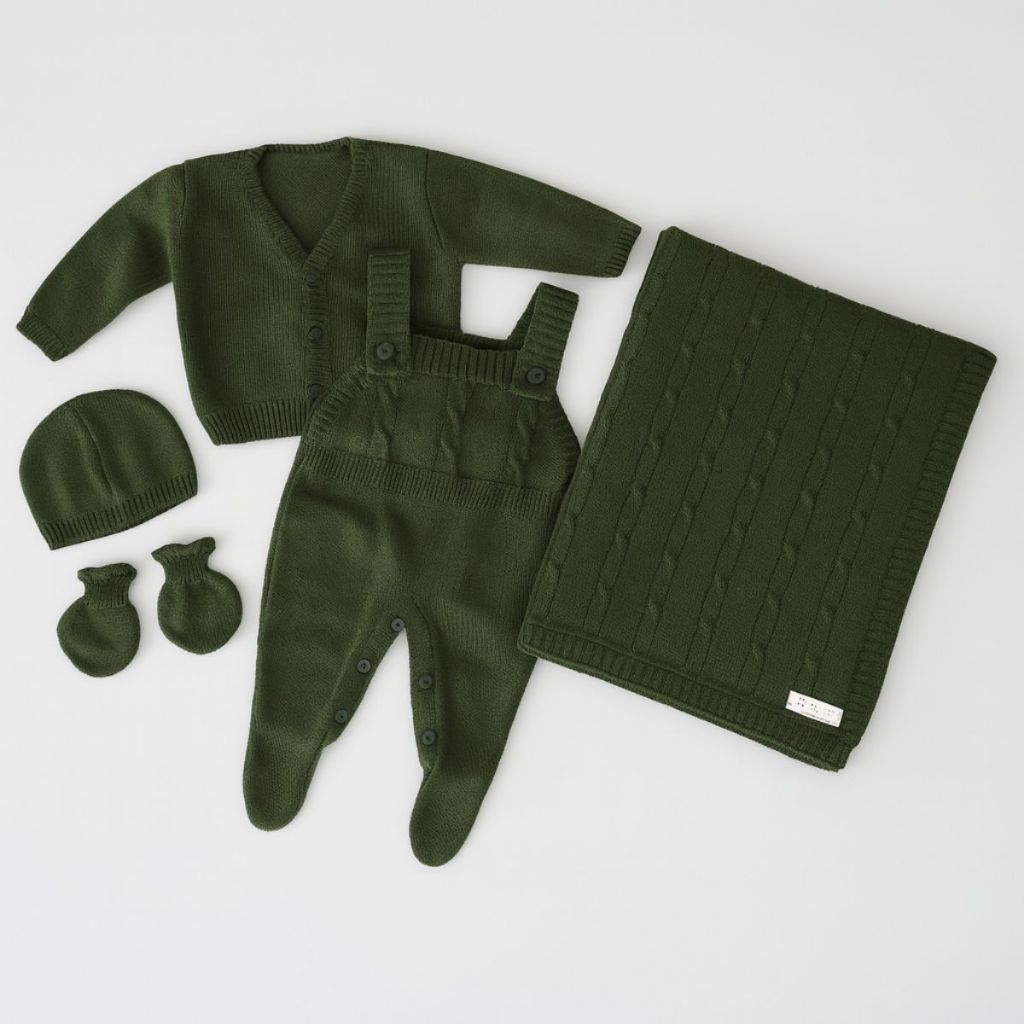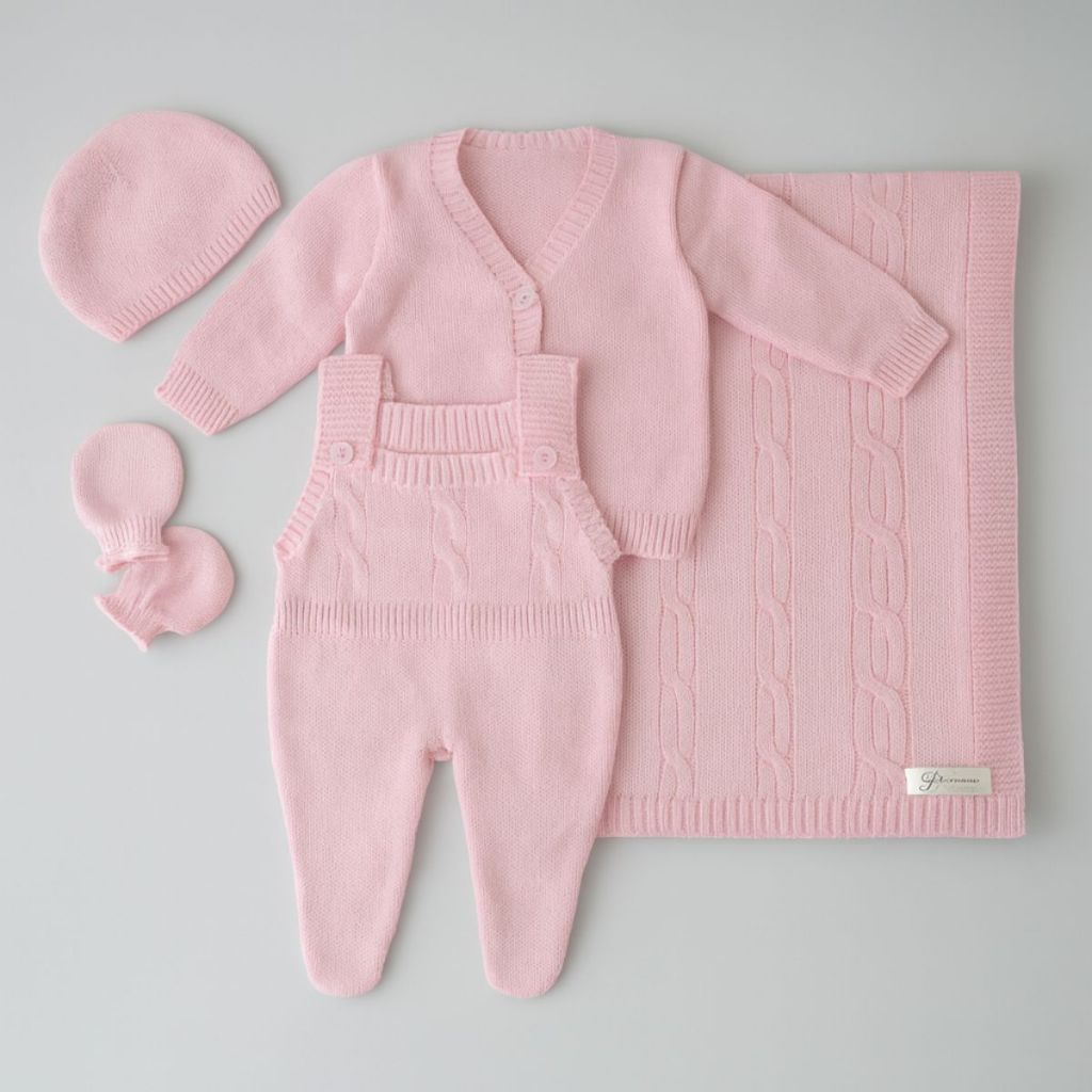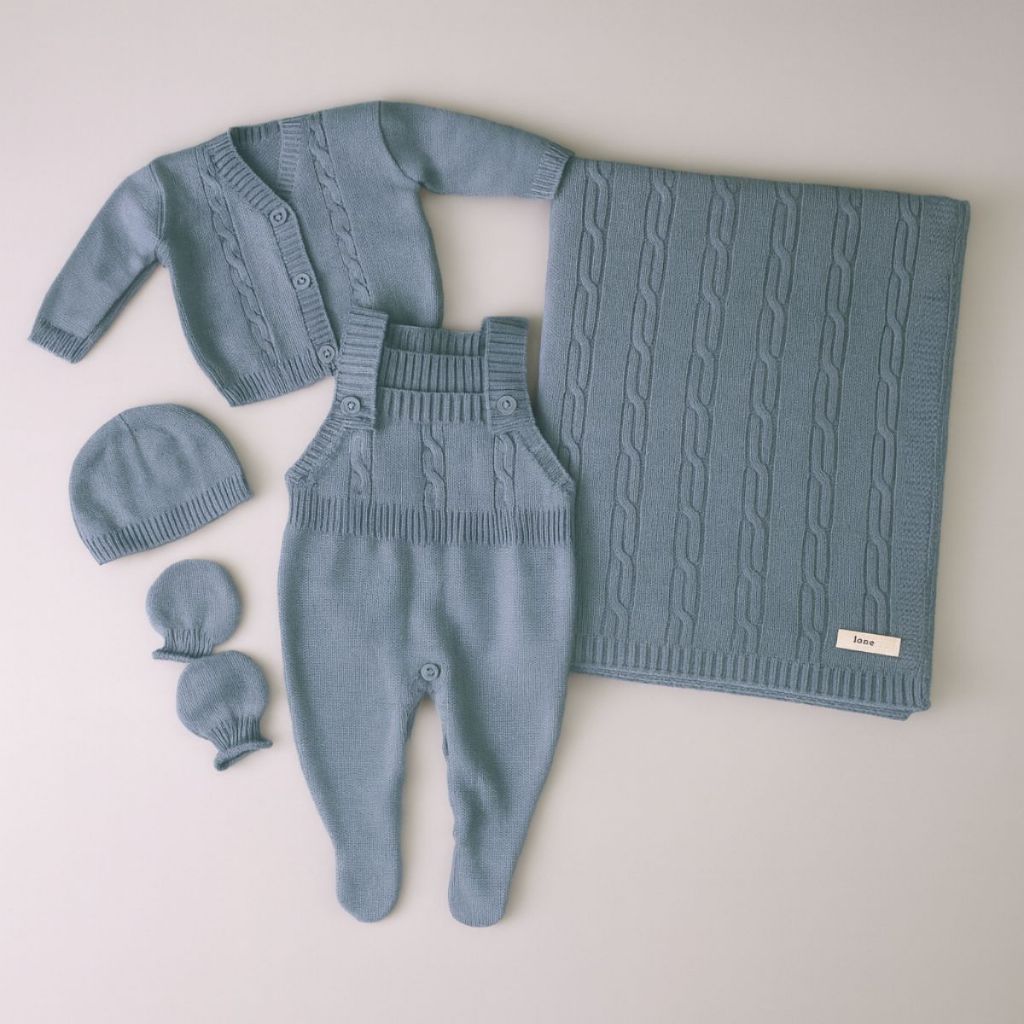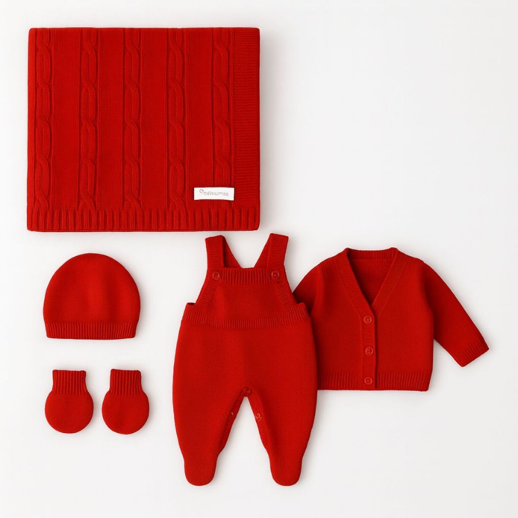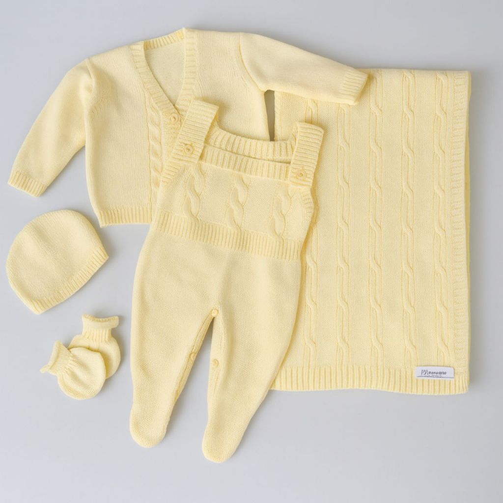 Kit Saída Maternidade Unissex Tricot – Manta, Jardineira, Casaco, Touca e Luvas para Menino e Menina