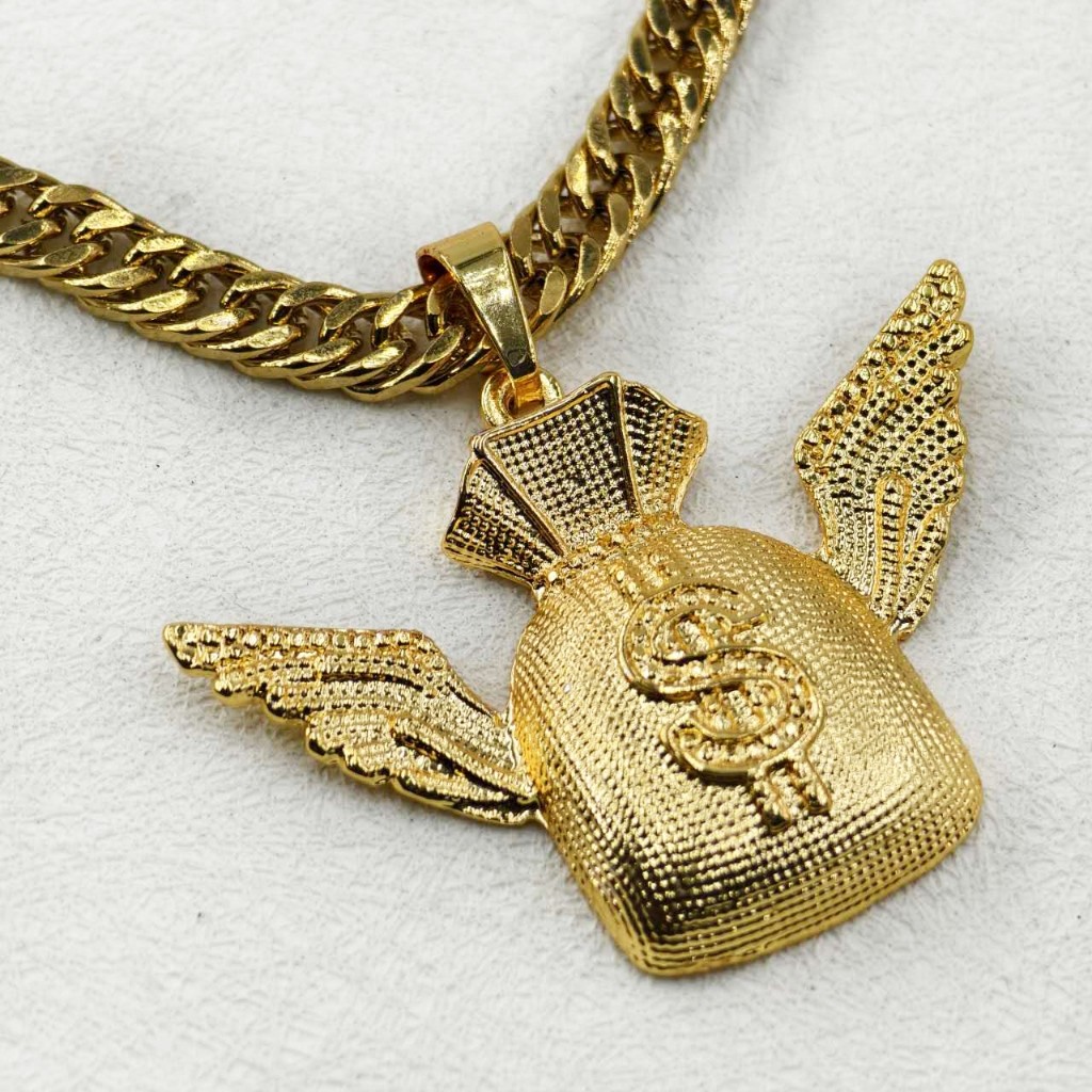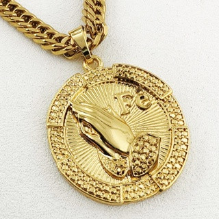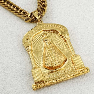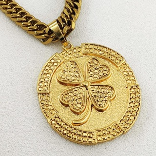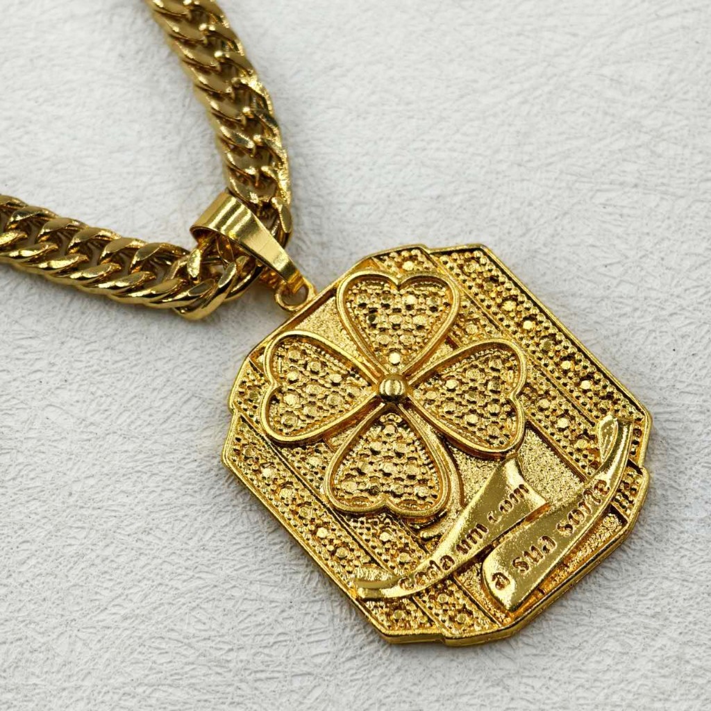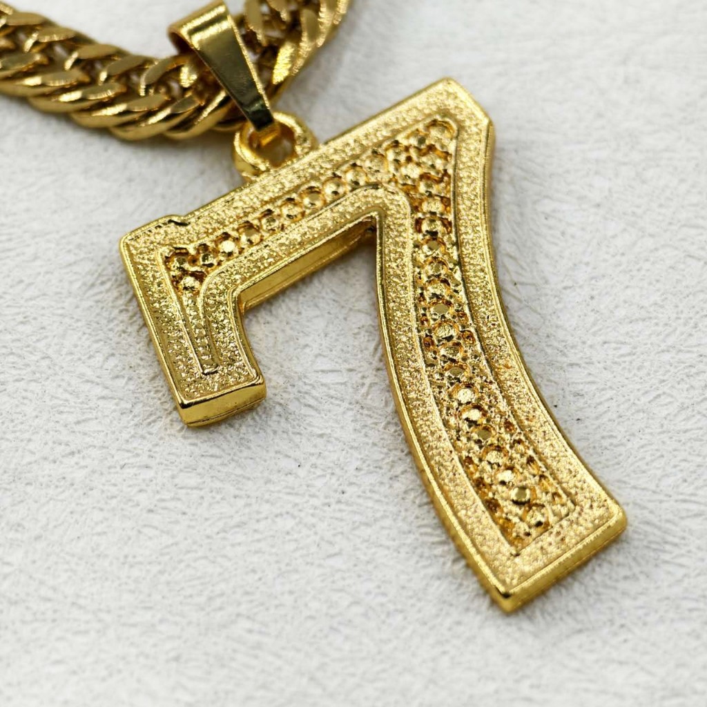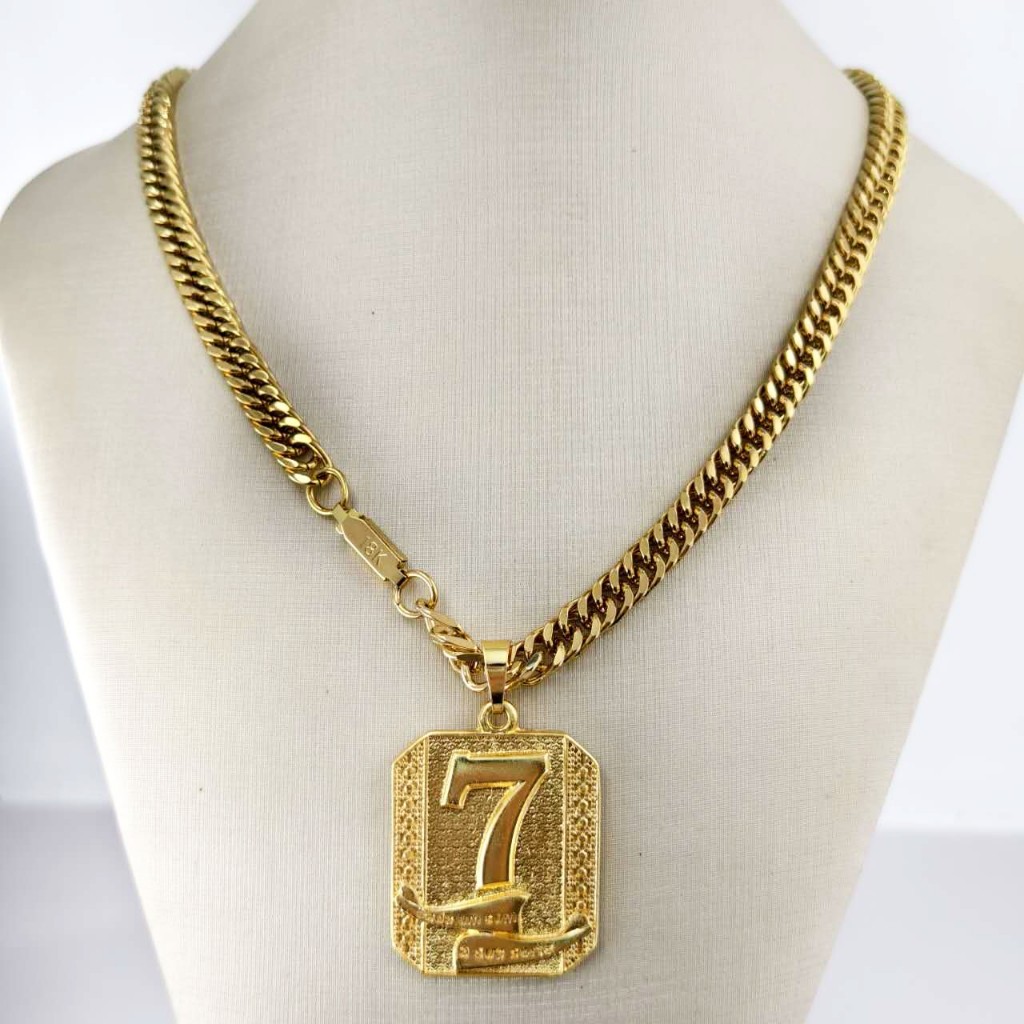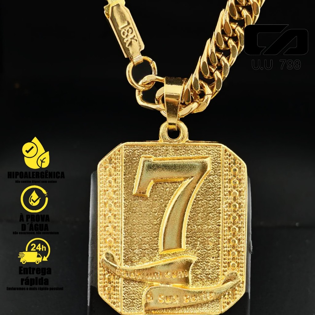 Corrente Masculina de Moeda Antiga com Pingente de Cadeado Cassino Número 7 - Colar Top Banhado Ouro