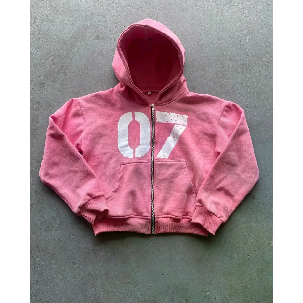Y2k Calças de pernas largas Calças casuais Hip-Hop Impressão Digital Moletom com capuz e zíper