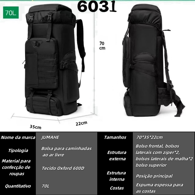 Mochila Cargueira Camping Impermeável 70l Tática Trilha - Sistema de Ventilação Dorsal - 6031
