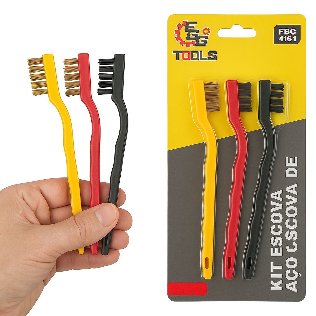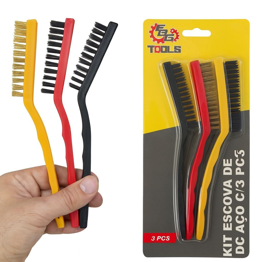 Escova De Aço Para Limpeza Pesada Limpeza Doméstica Cabo Ergonômico Kit com 3/6 Unidades