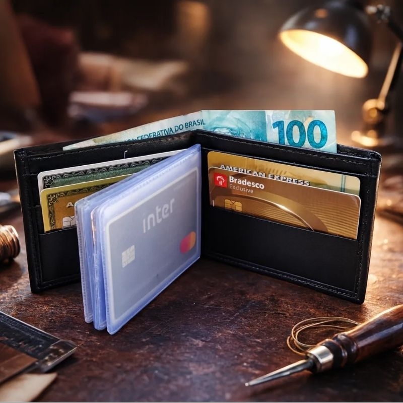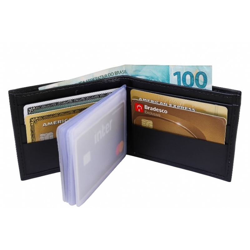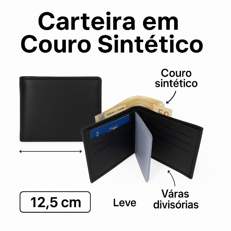 Carteira Couro Sintético Masculino Porta Cartões Dinheiro resistente