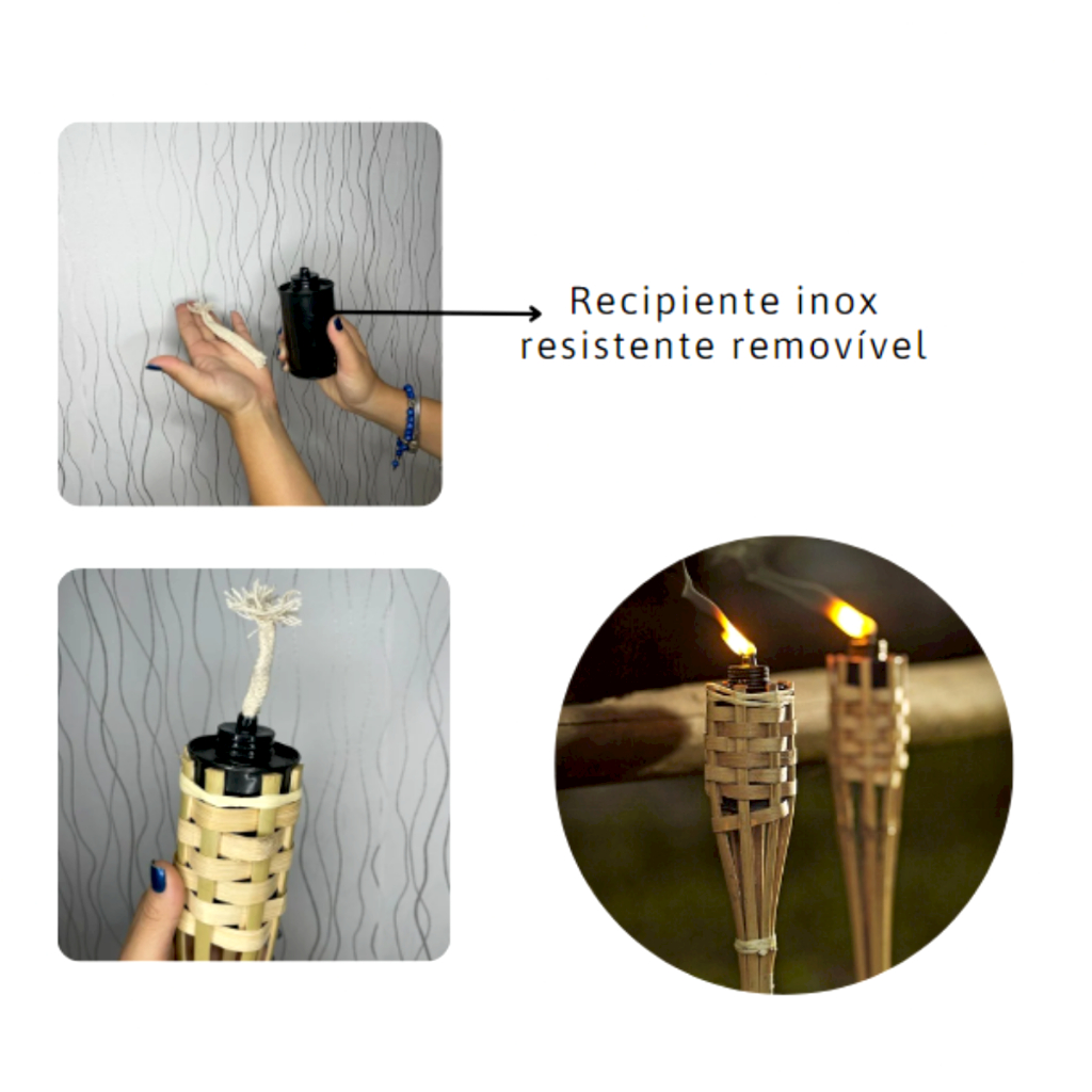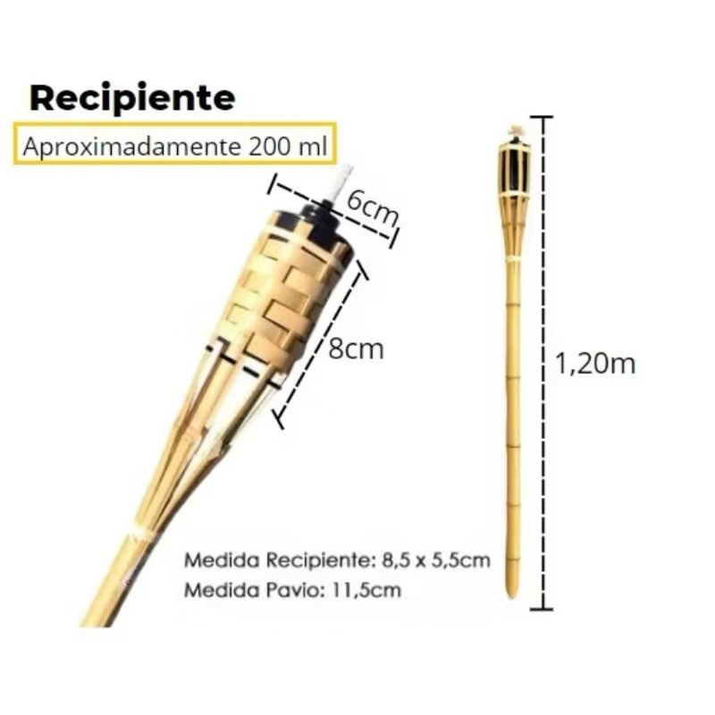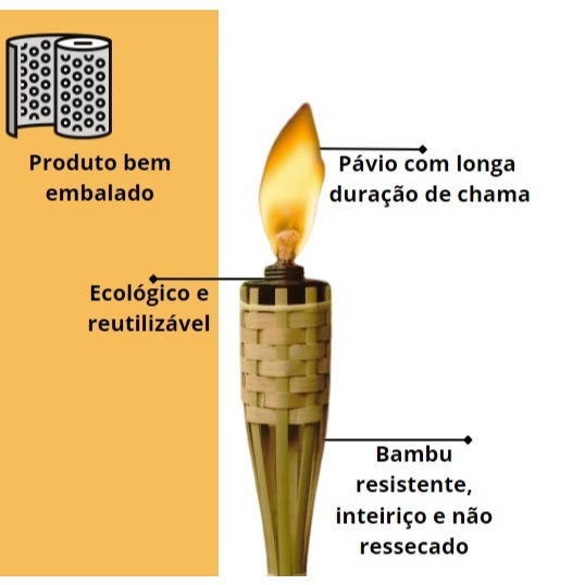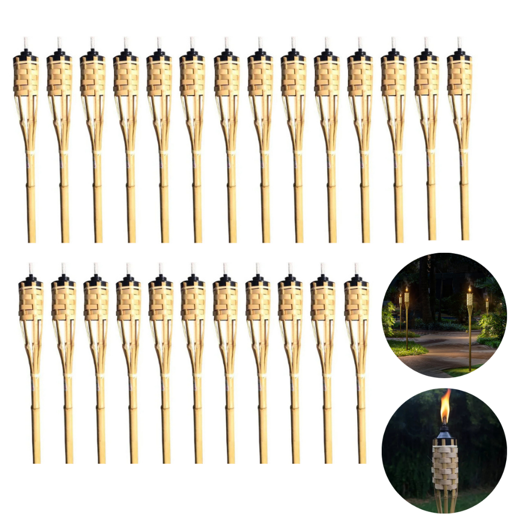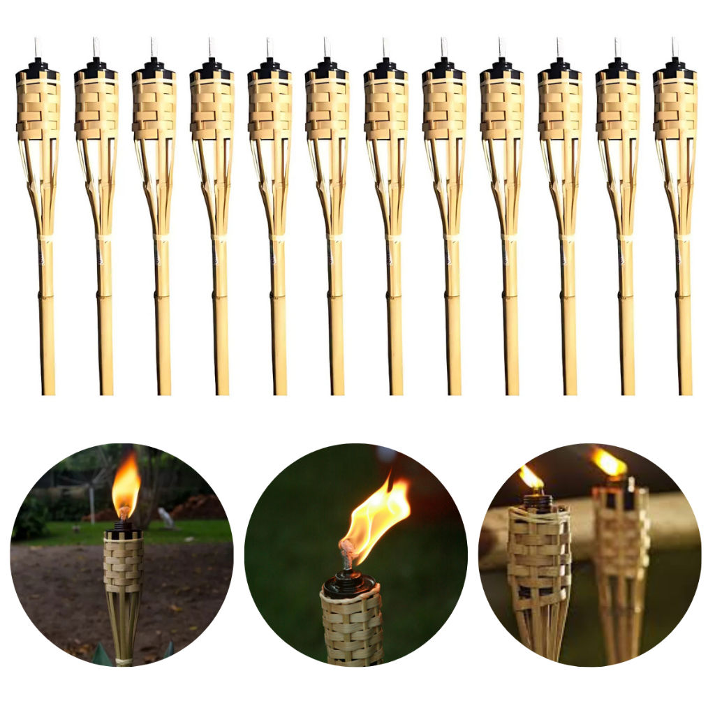 Kit Com 6 Tochas De Bambu Iluminação Decoração Jardim Luau 120cm
