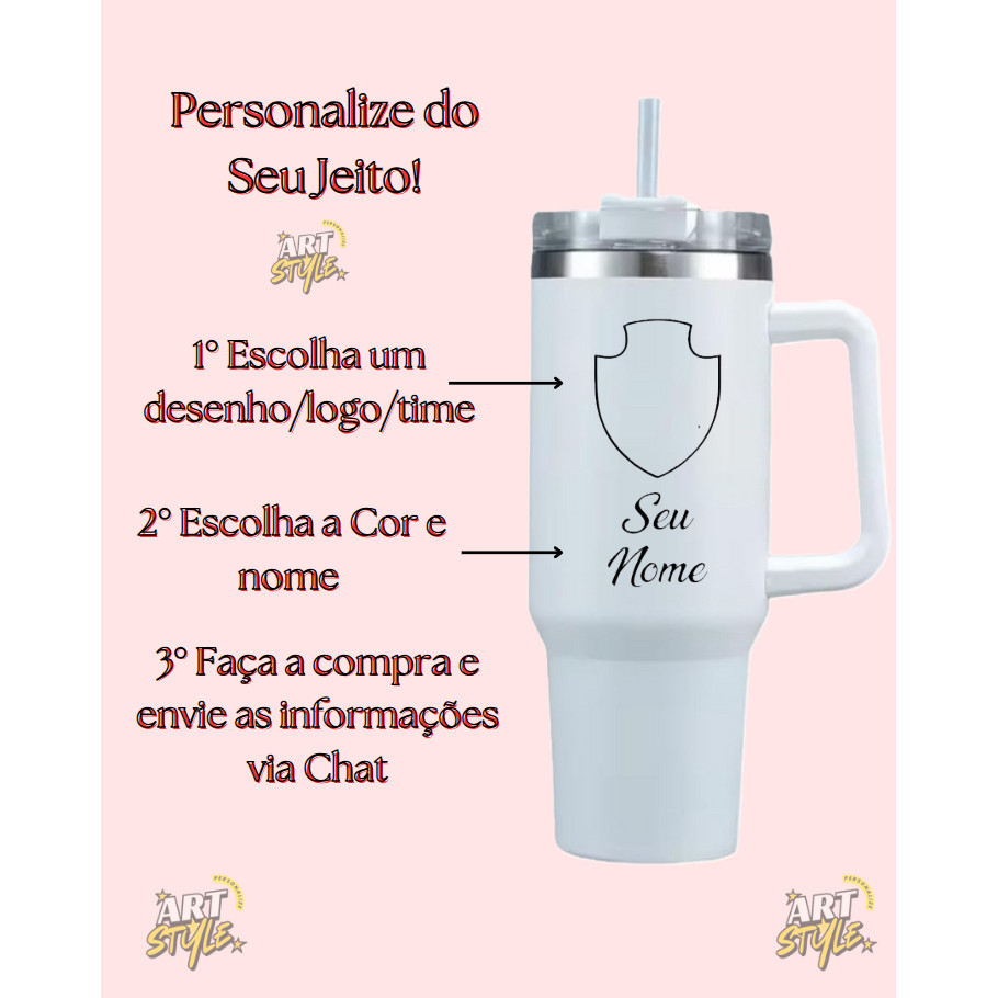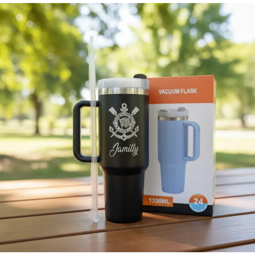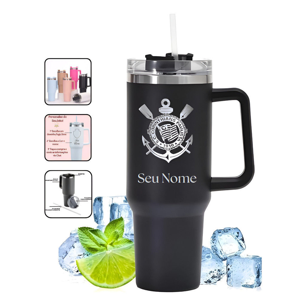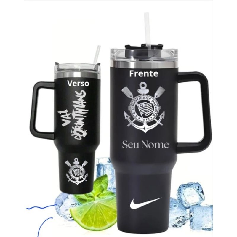 Copo térmico do Corinthians Com Canudo 1200ml Personalizado com seu nome e time
