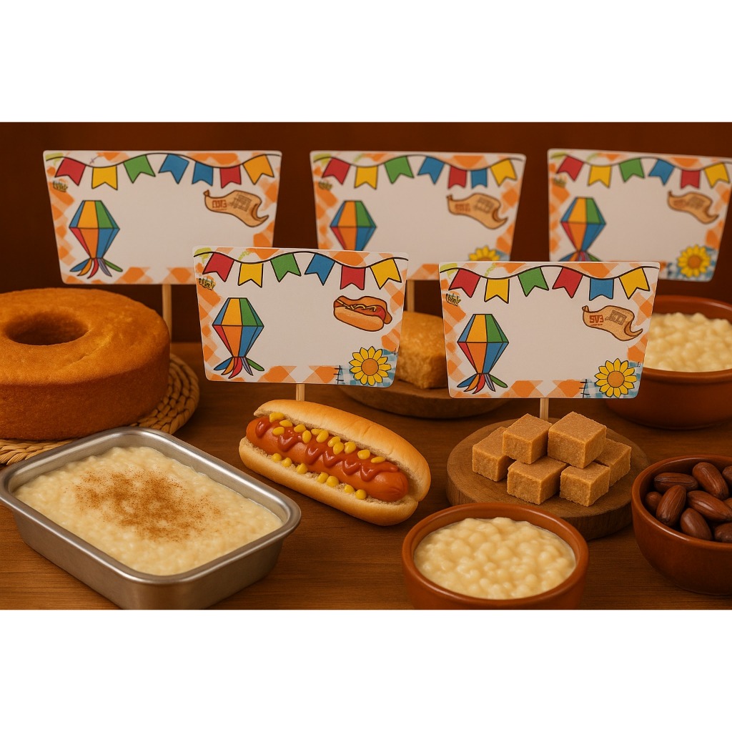 ENVIO IMEDIATO Kit 20 Plaquinhas Festa Junina para Escrever Nome das Comidas