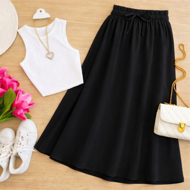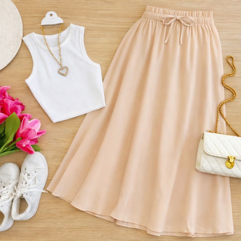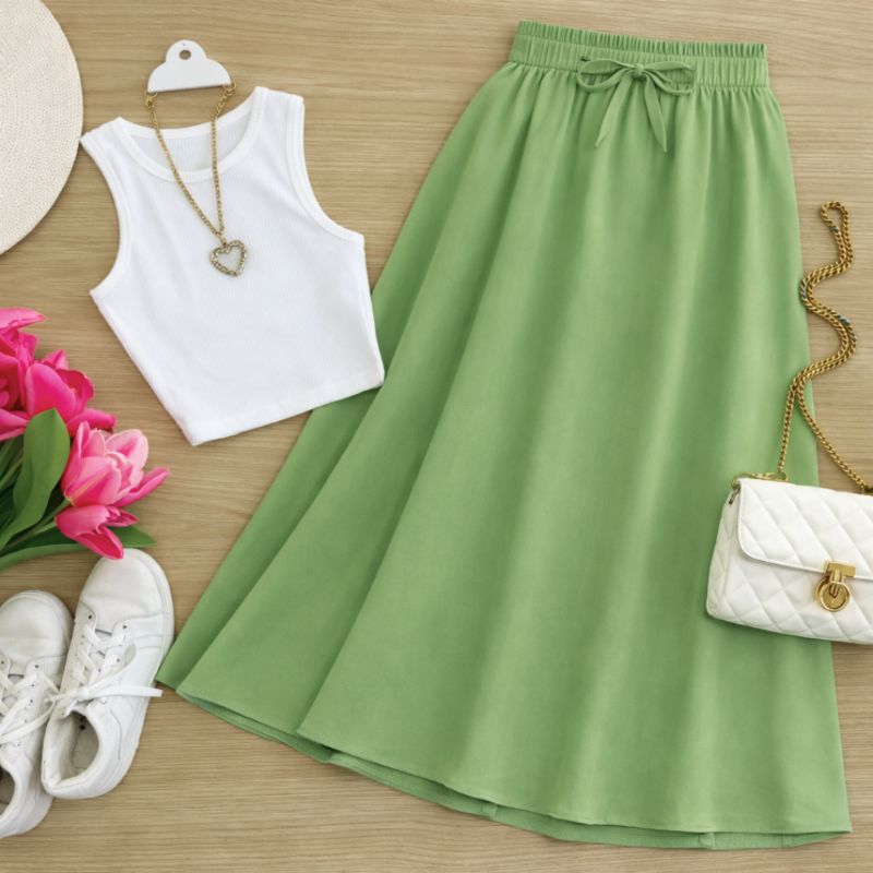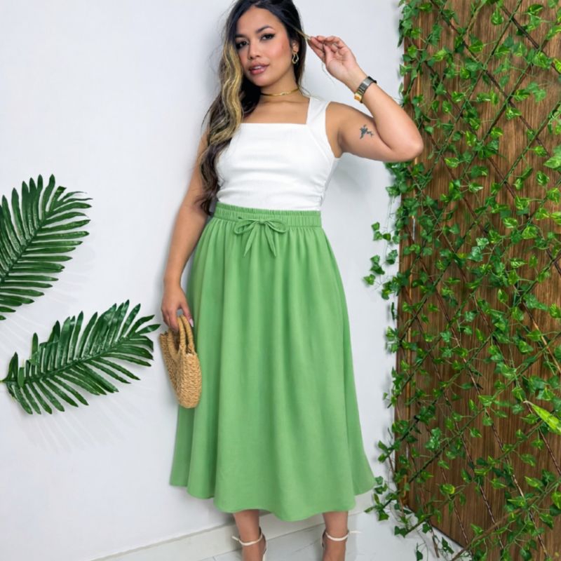 Saía Midi Feminina Evangelica Casual Com Elástico