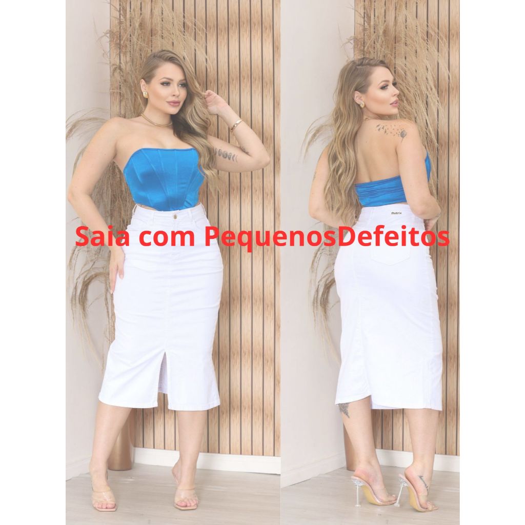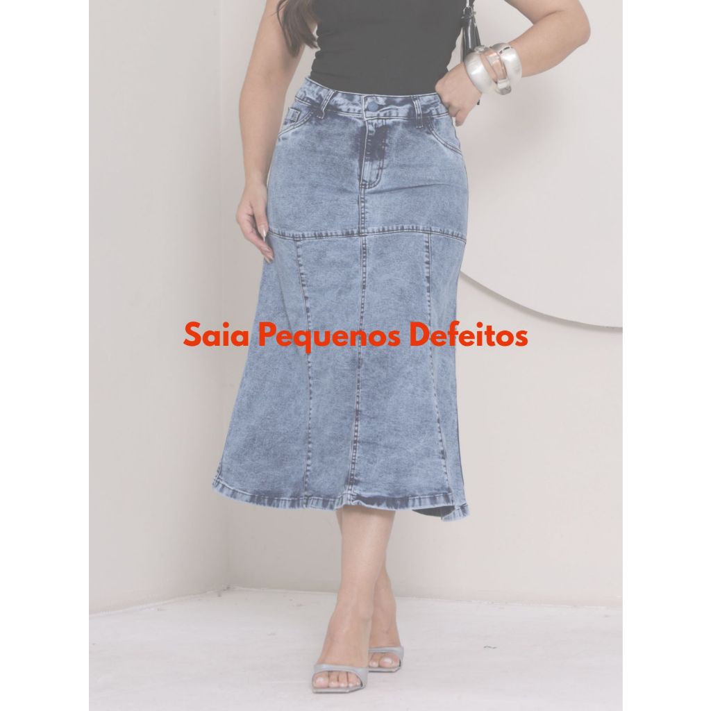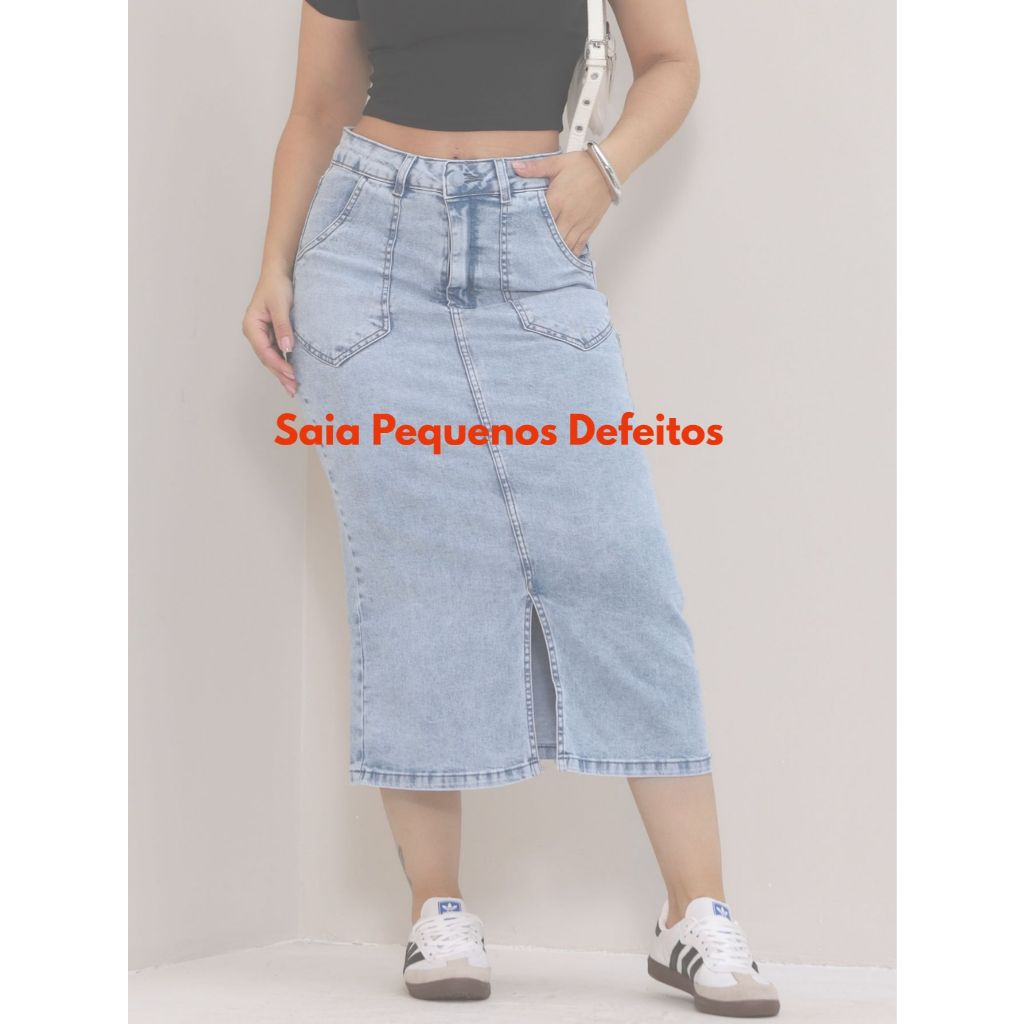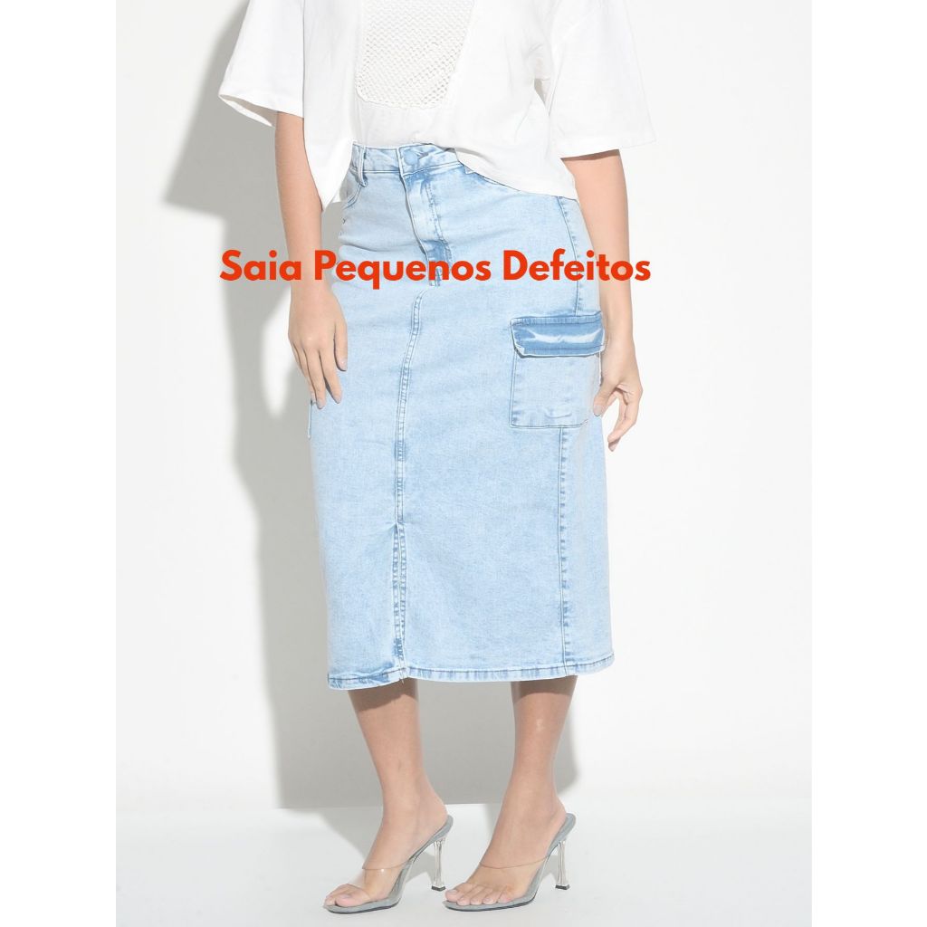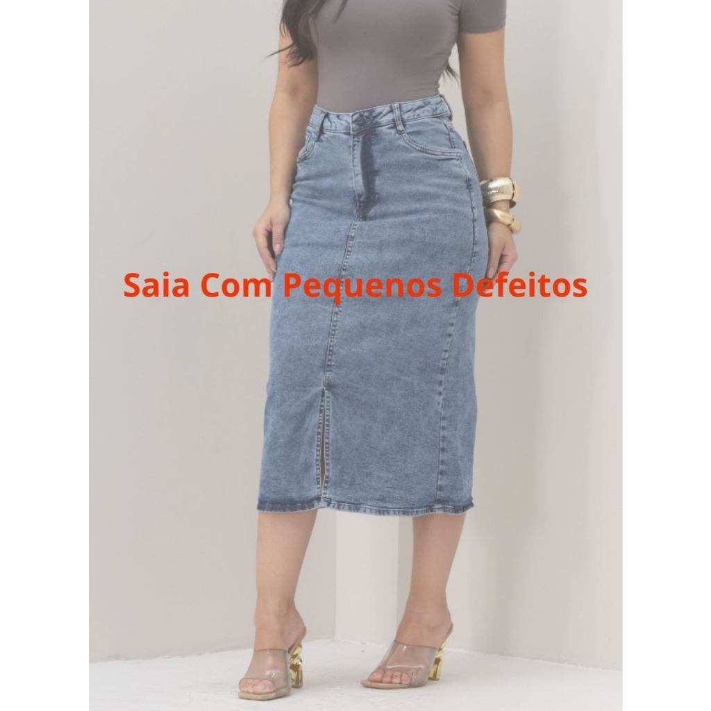 Saia Midi Lápis Jeans Com Pequenos Defeitos Avarias Com Lycra