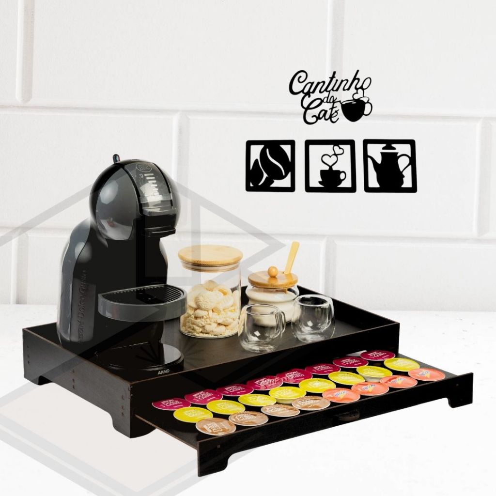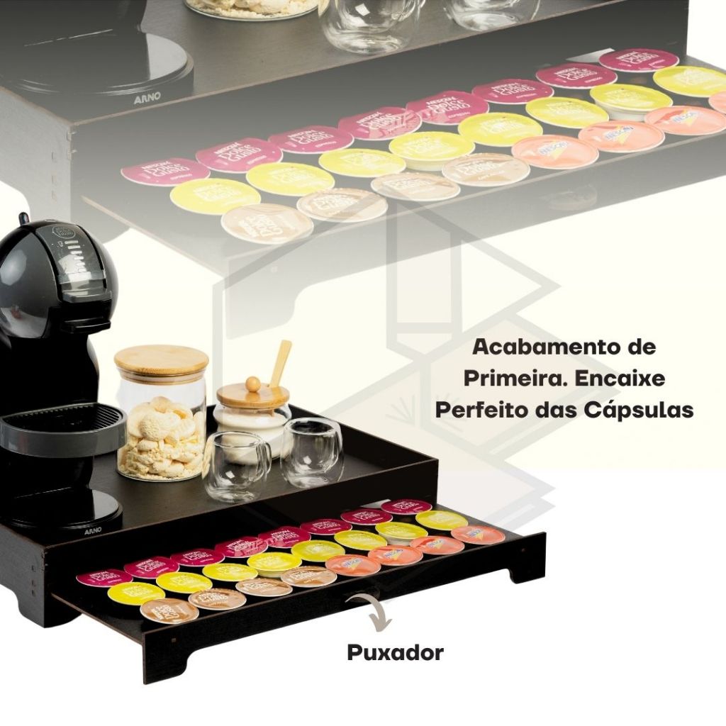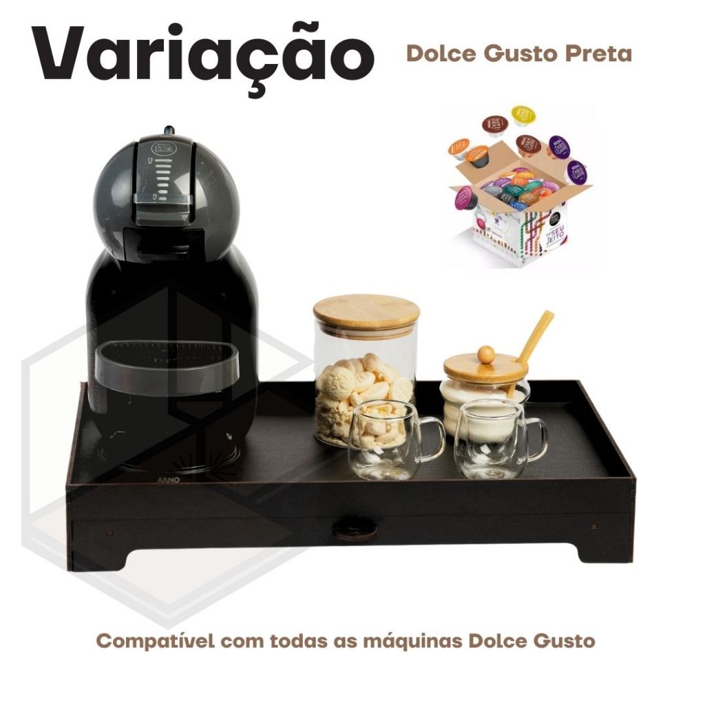 Bandeja Porta Capsulas Preta apoio Cafeteira Dolce Gusto organizador mdf Grande Gaveta café chá