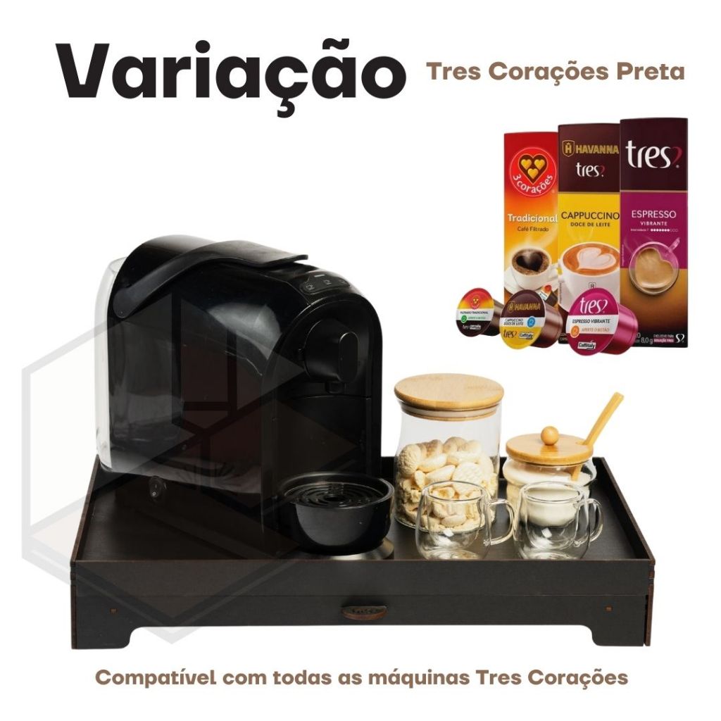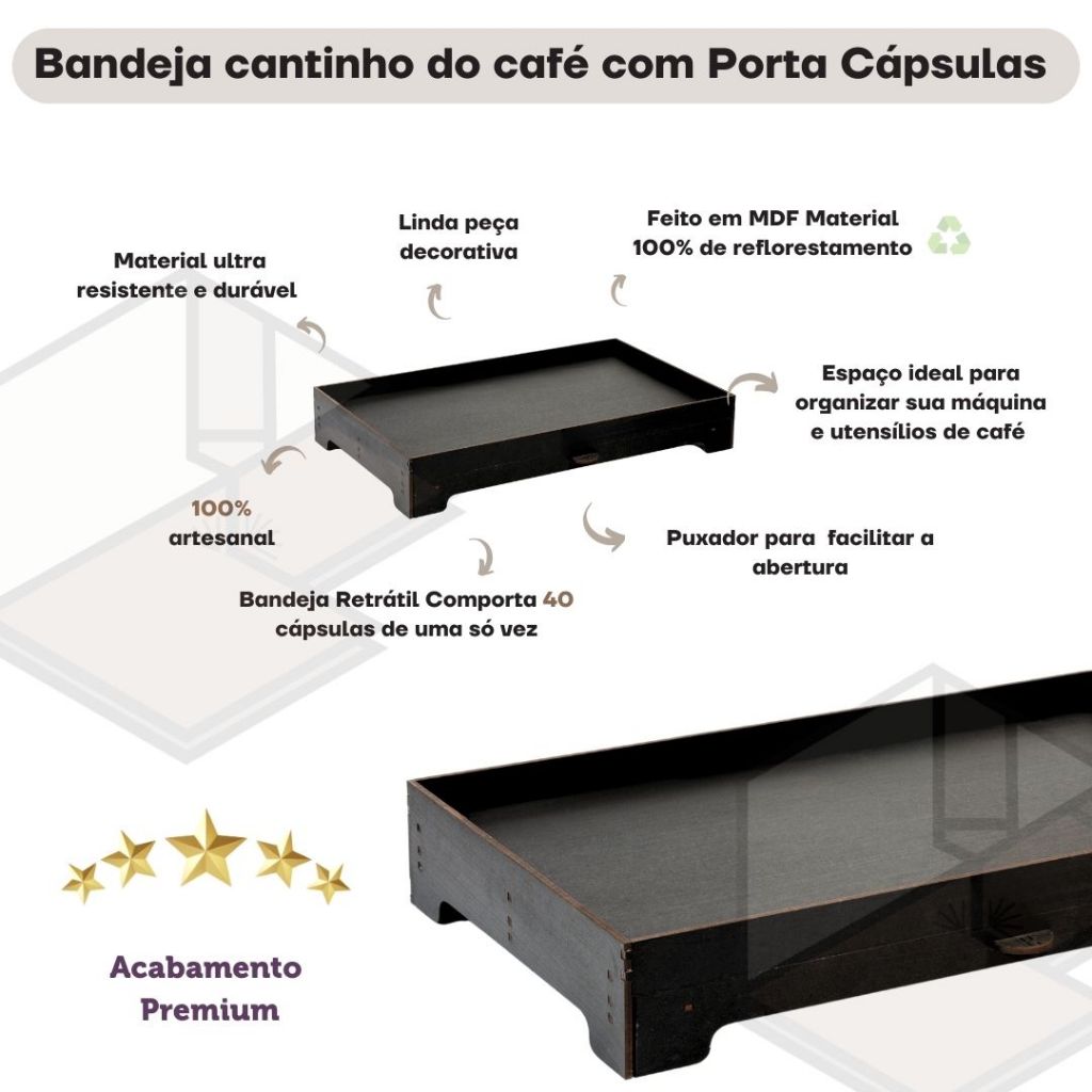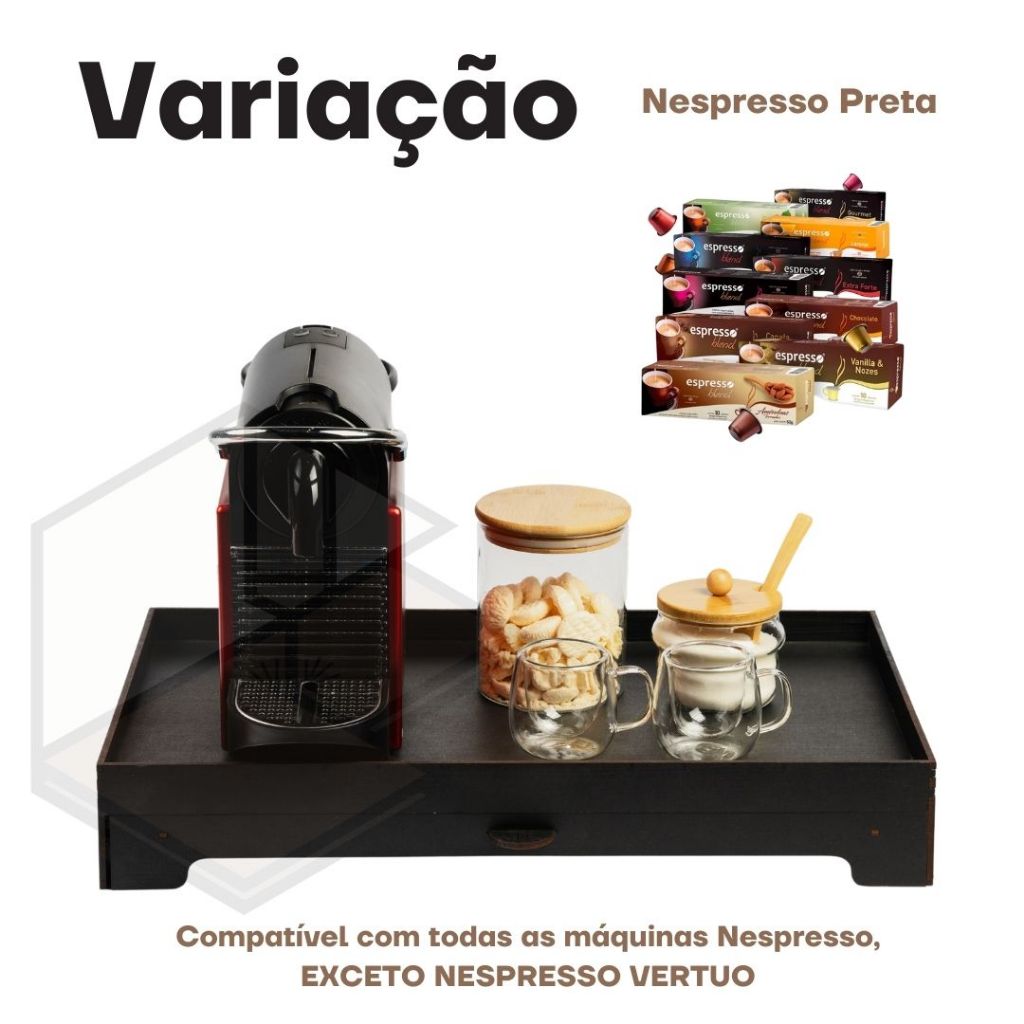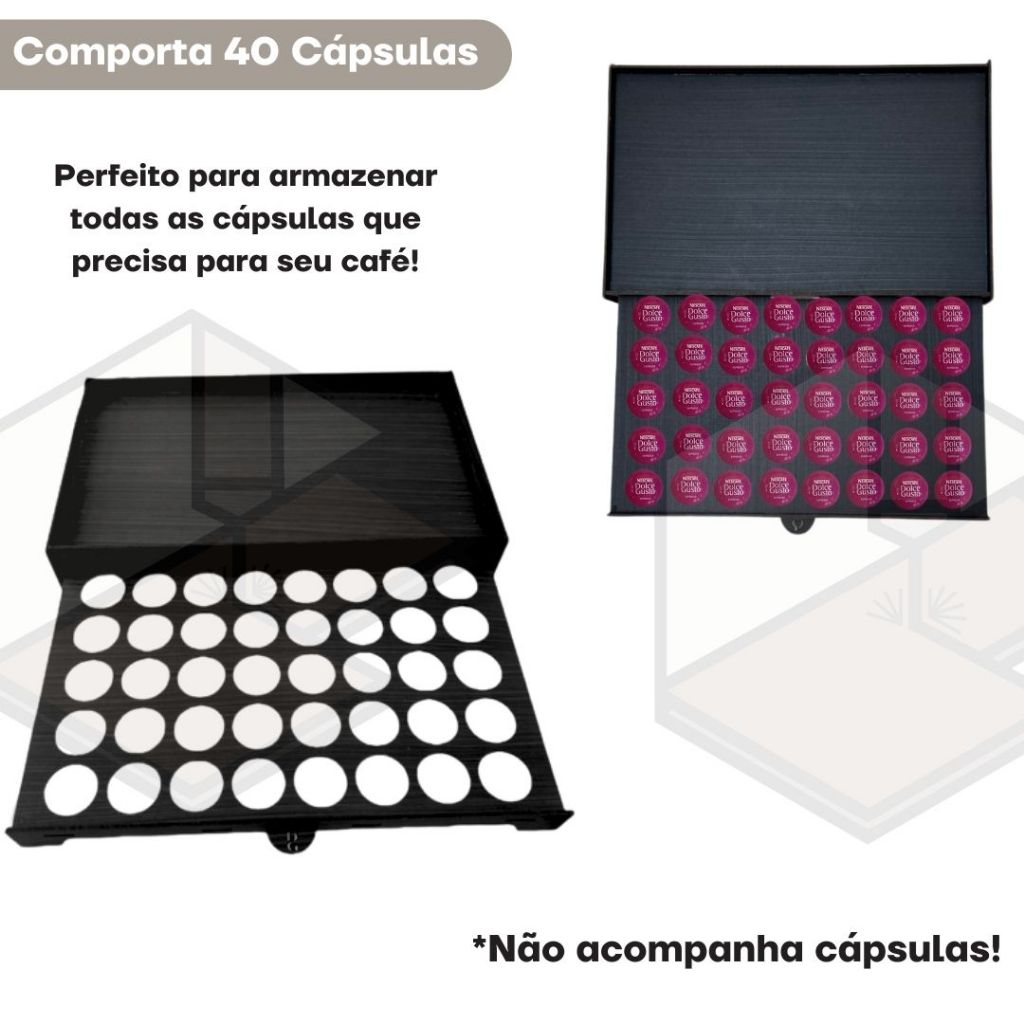 Bandeja Porta Capsulas Preta apoio Cafeteira Dolce Gusto organizador mdf Grande Gaveta café chá