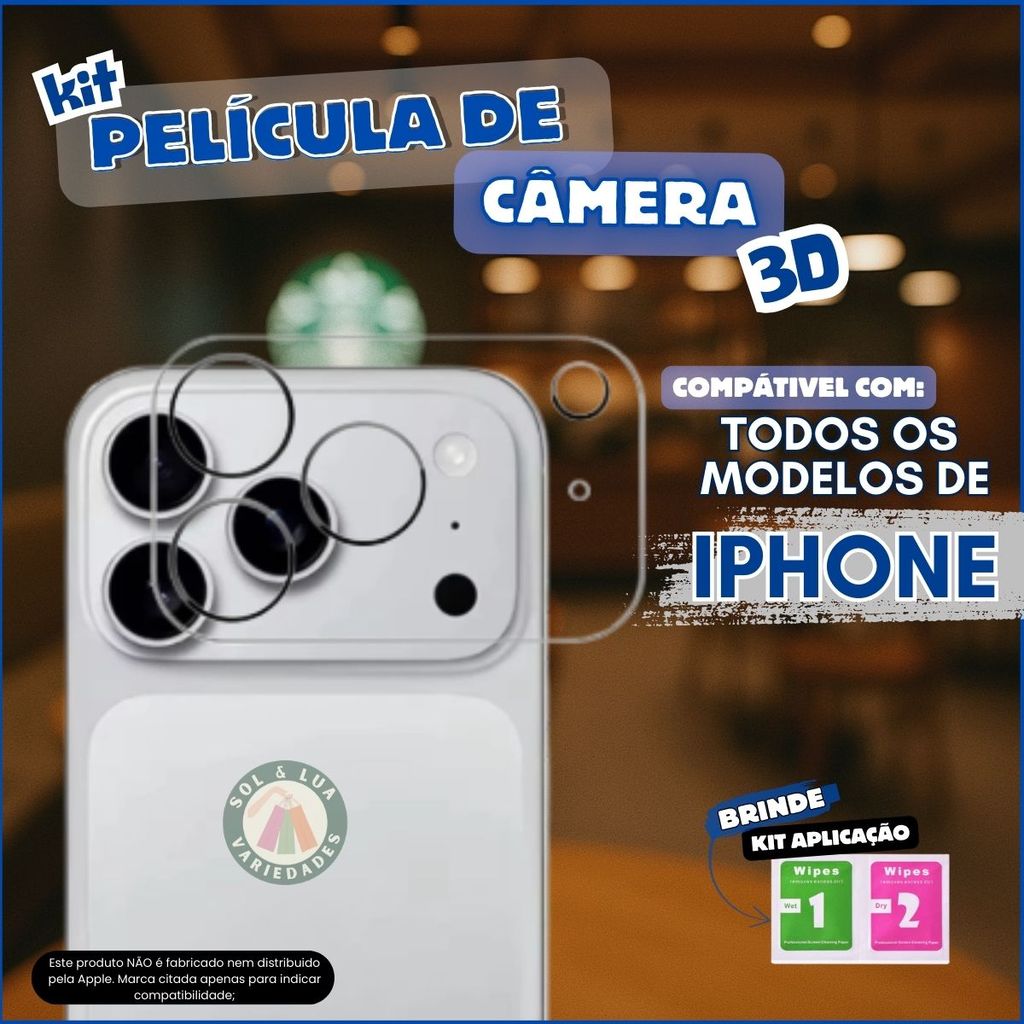 Kit Película de Câmera Traseira Vidro Iphone 11 12 13 14 15 16 17 E Plus Pro Mini Max Air 16e