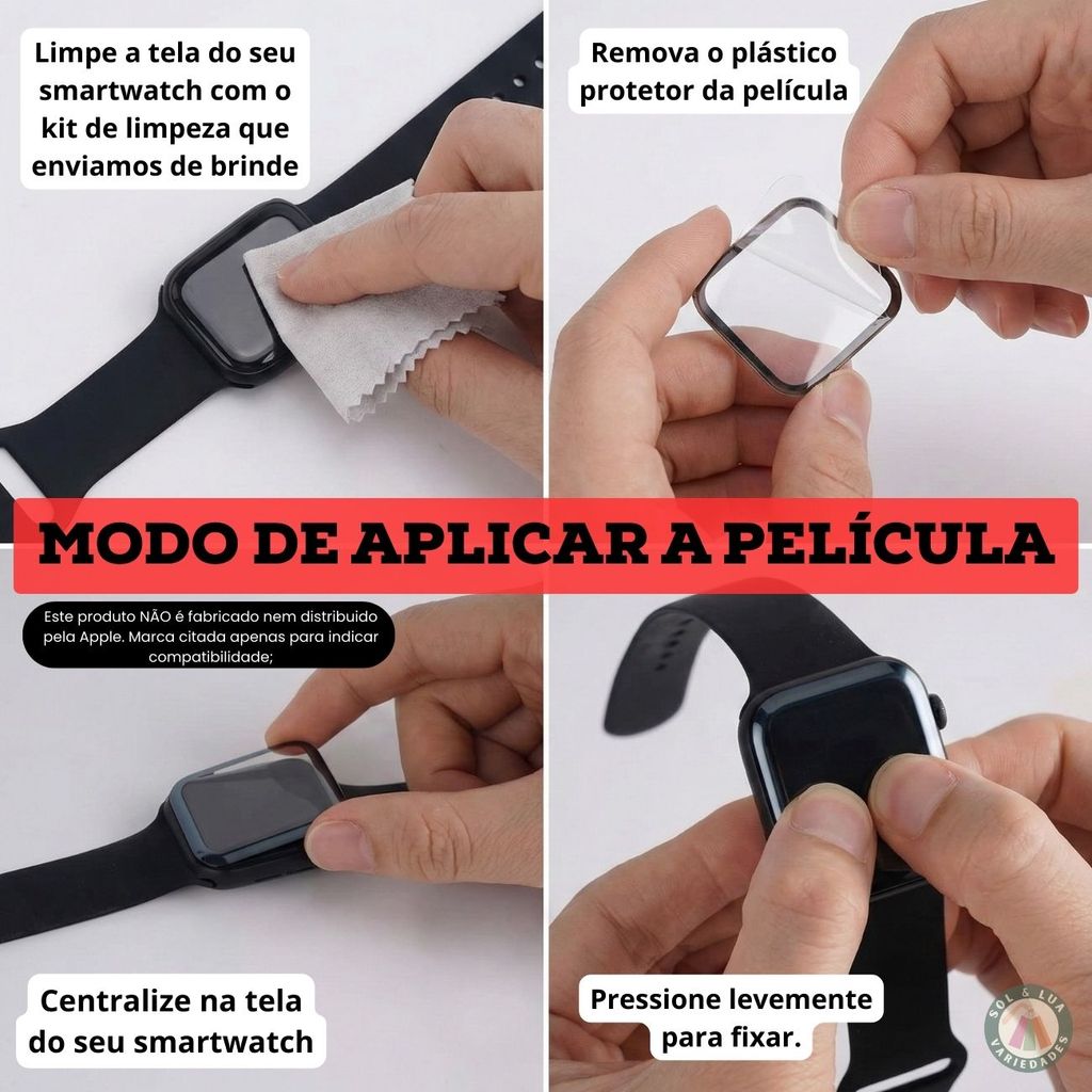 Kit Película Cerâmica 3D Curvada compatível com Smartwatch Apple Watch IWO 38 40 41 42 44 45 49mm