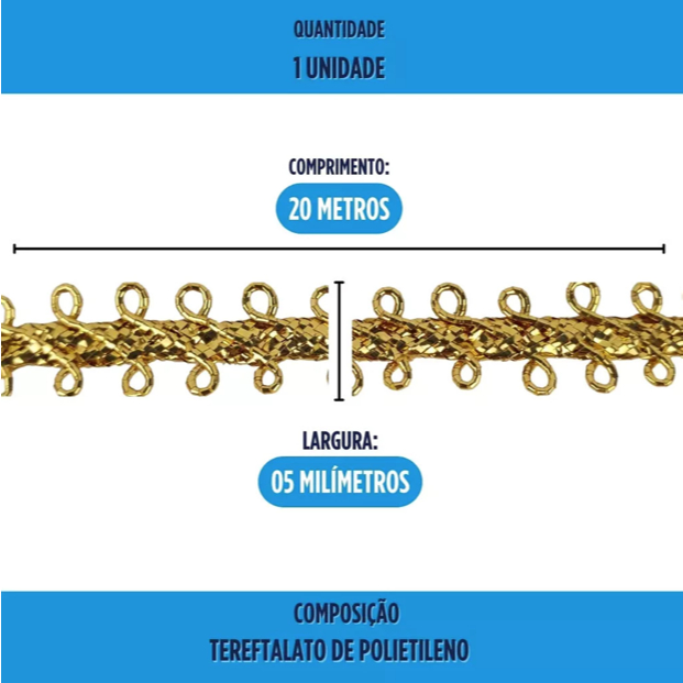 Fita Galão Passamanaria - 5mm - Ref:Galao-26 - Rolo C/20 Mts COR:OURO