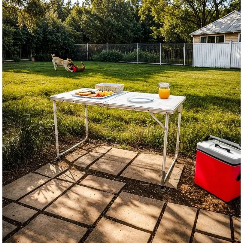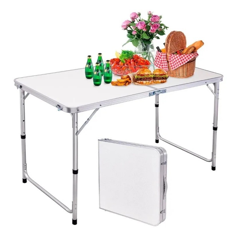 Mesa Camping Dobrável Vira Maleta Portátil Reforçada Praia 120x60 Branco S/Banco
