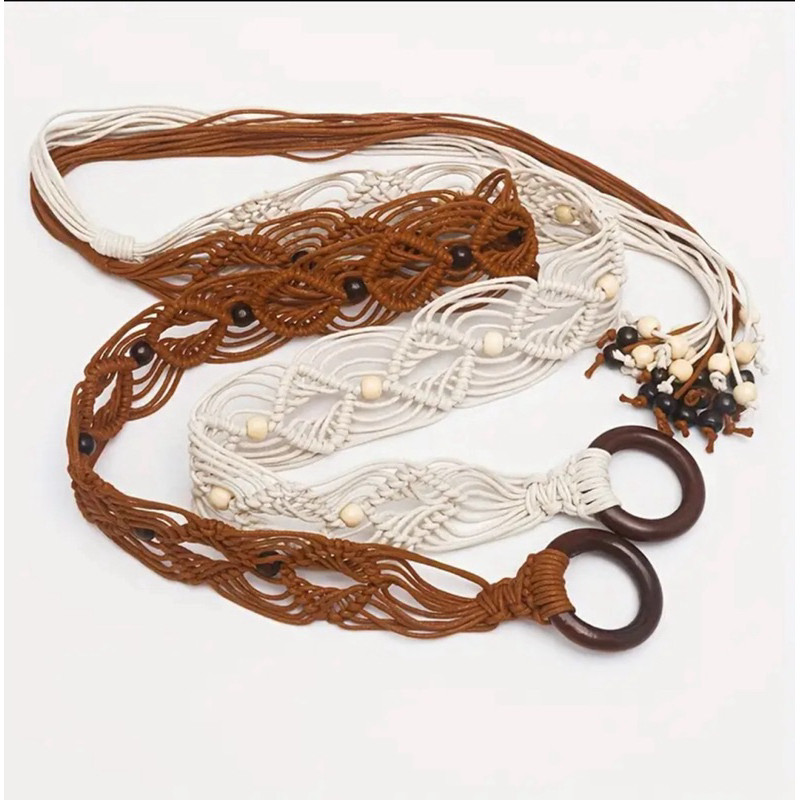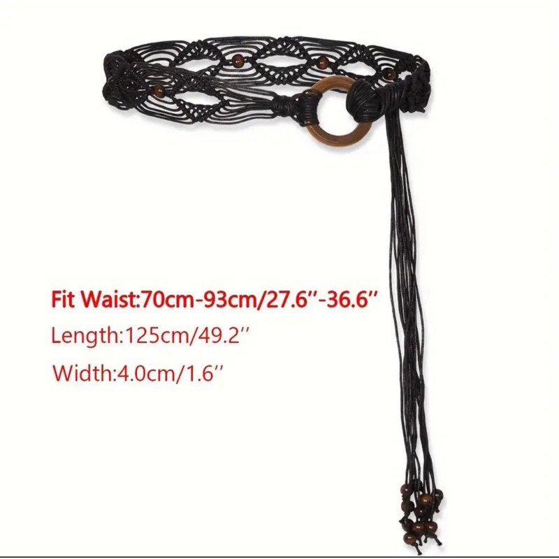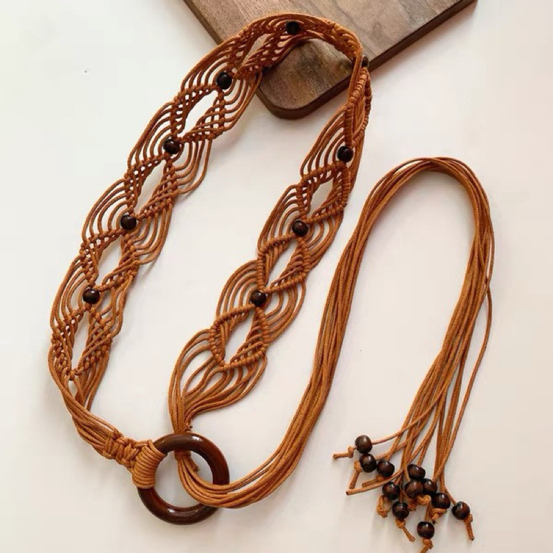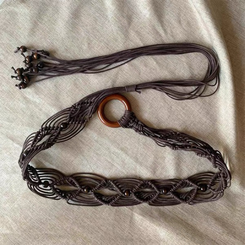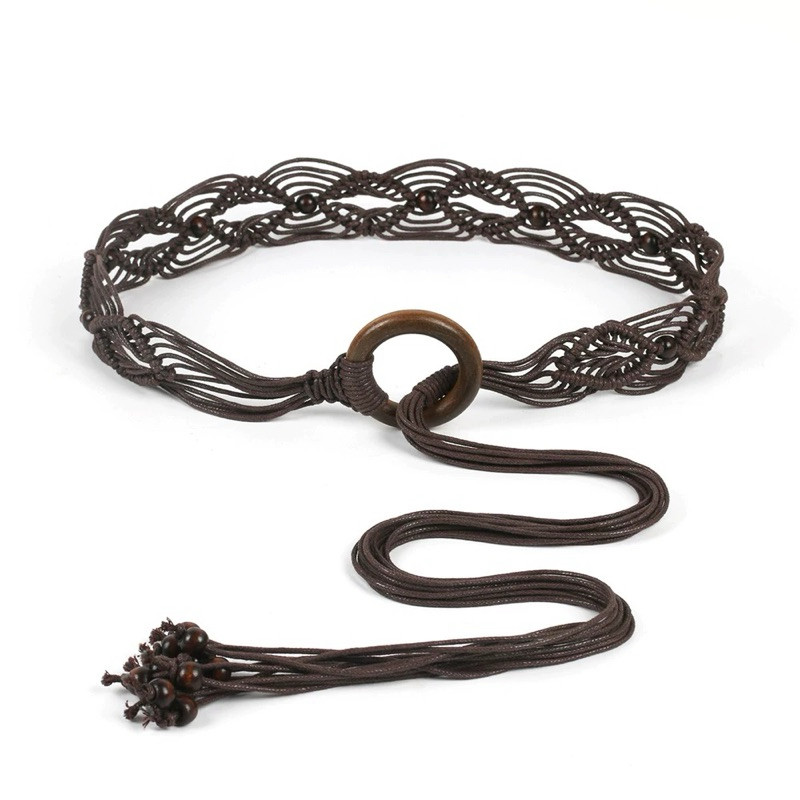 Cinto Country Trançado Oco de Círculo de Madeira com Corda de Cera de Estilo Retrô Boêmio