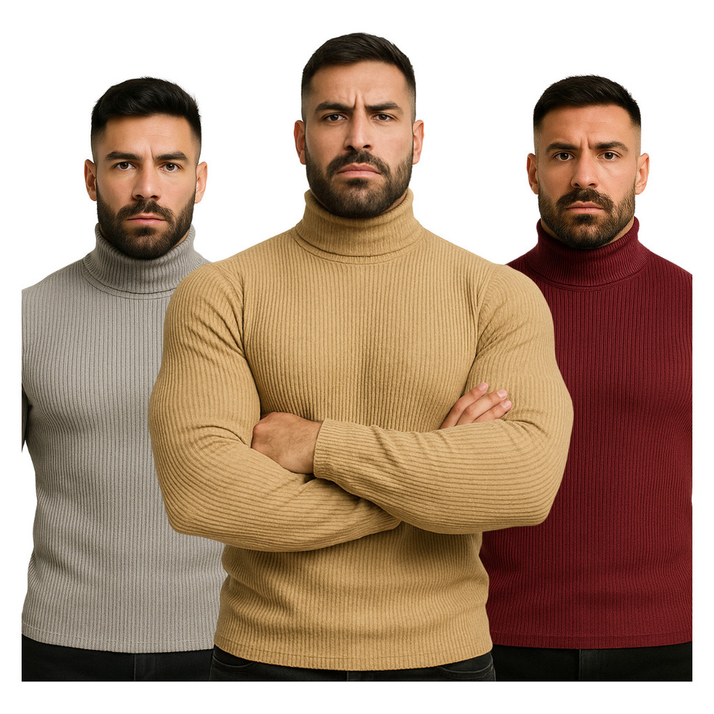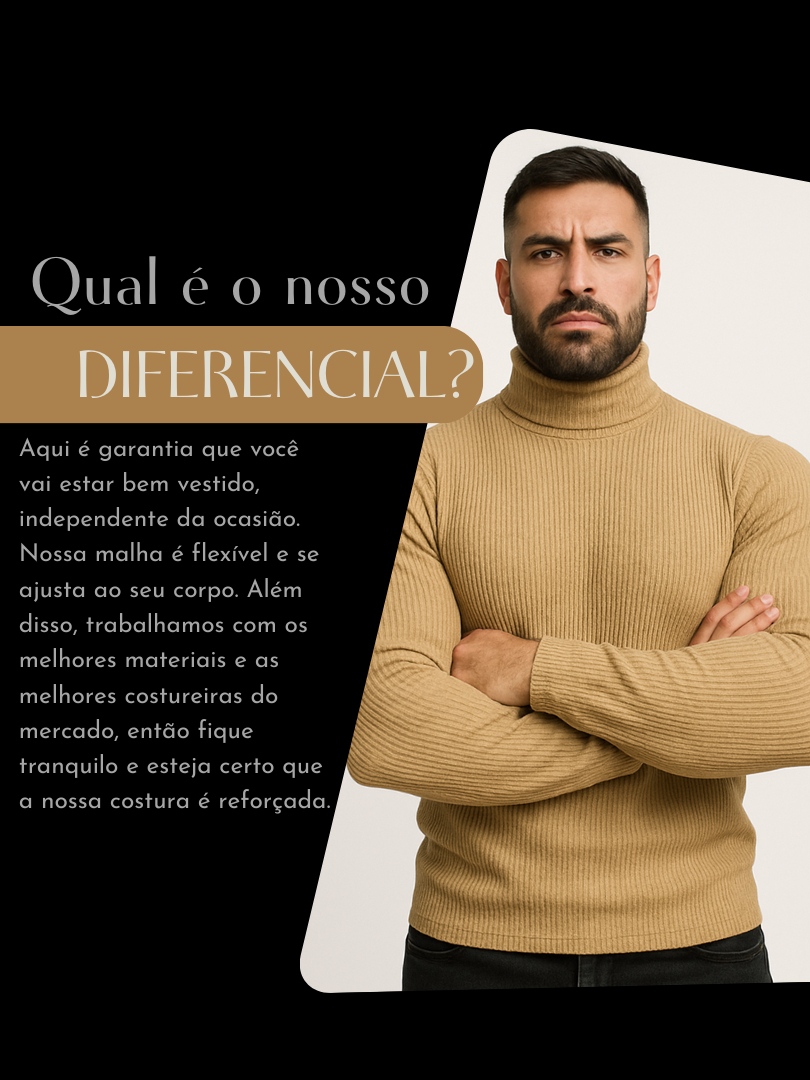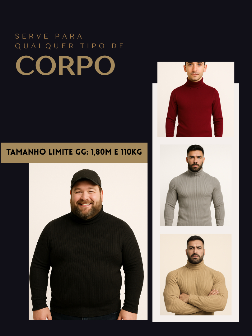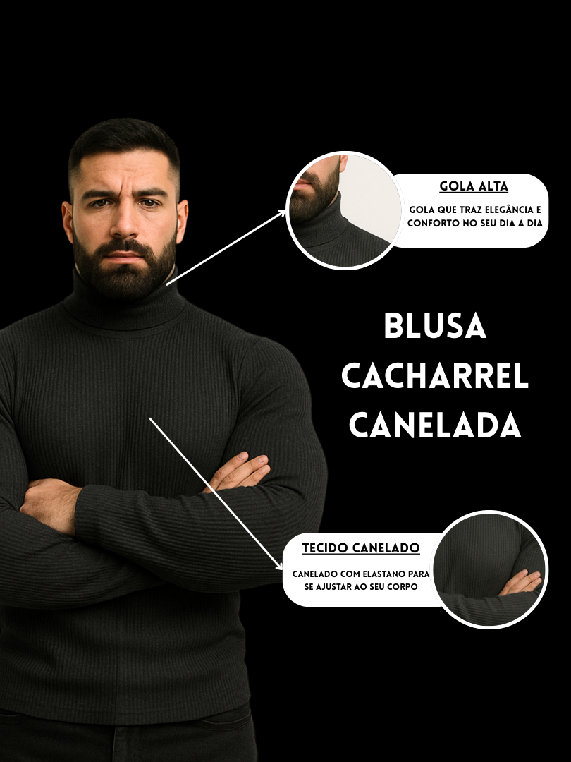 Kit 3 Blusas Cacharrel Masculino Gola Alta Canelado Camisa Manga Cumprida