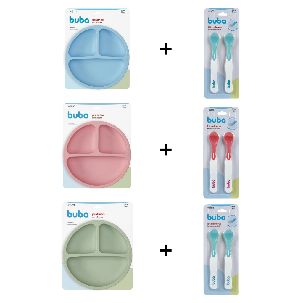 KIT PRATO COM VENTOSA + COLHER BUBA INTRODUÇÃO ALIMENTAR