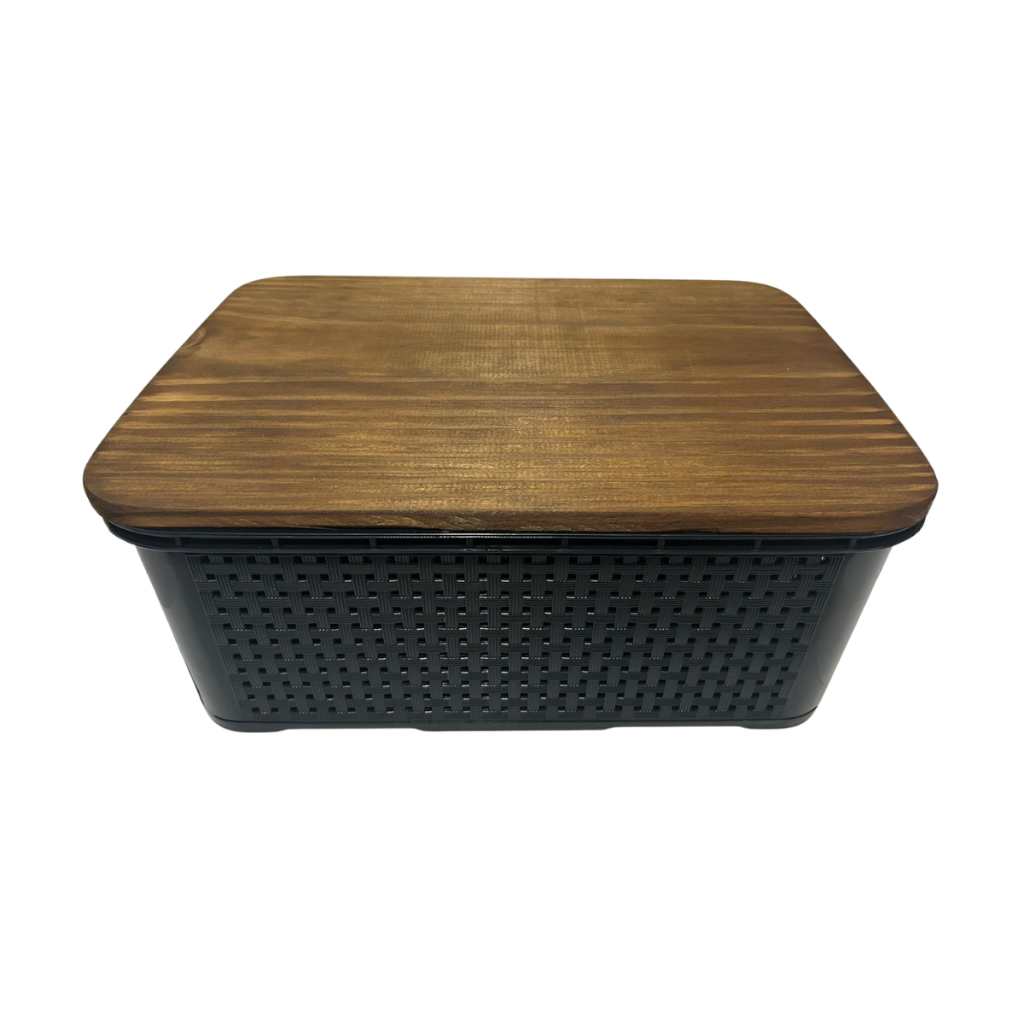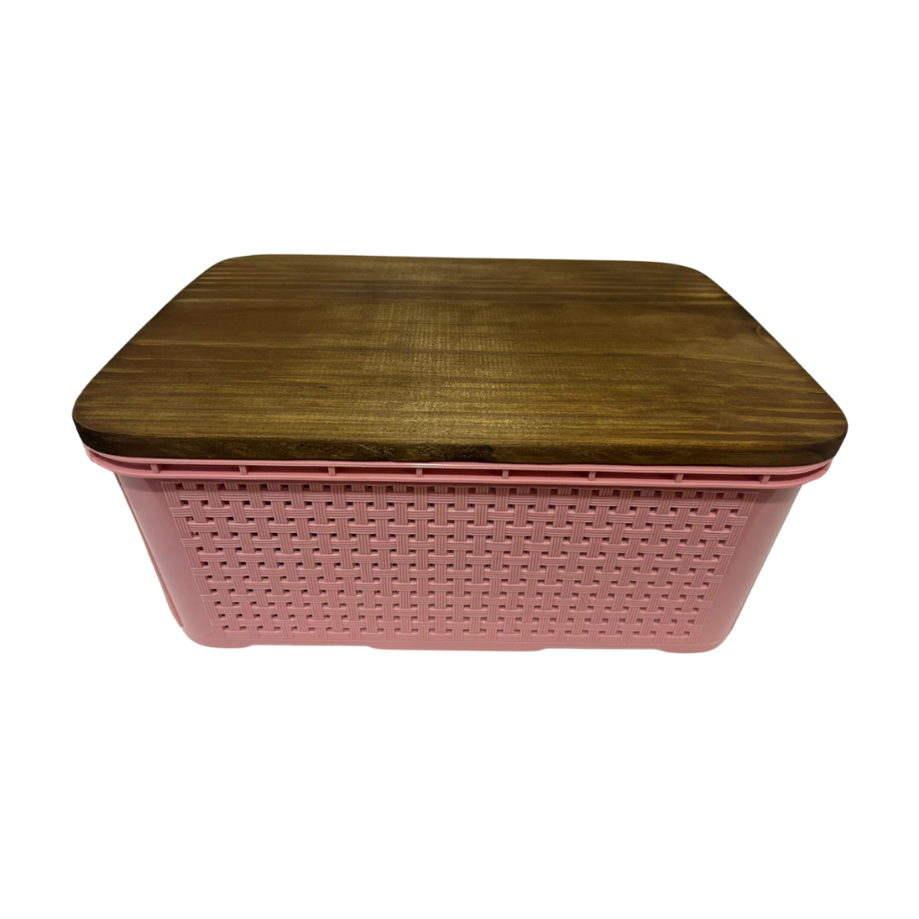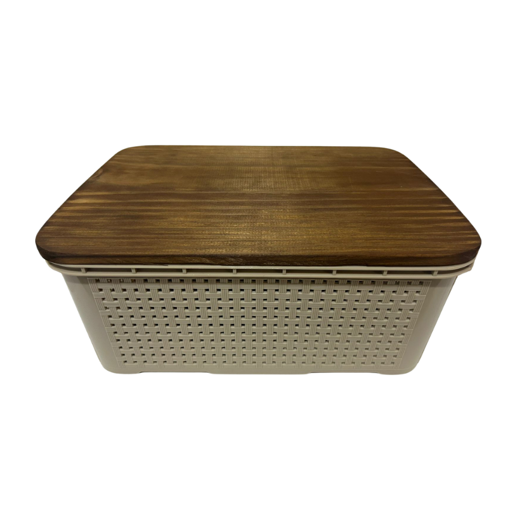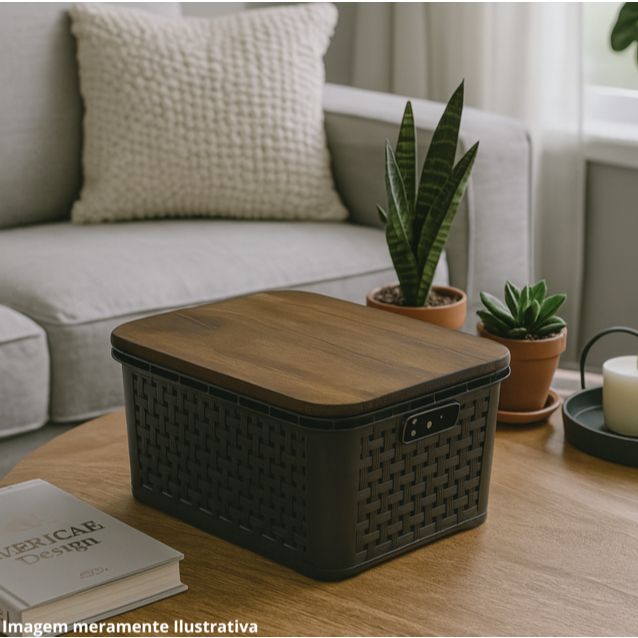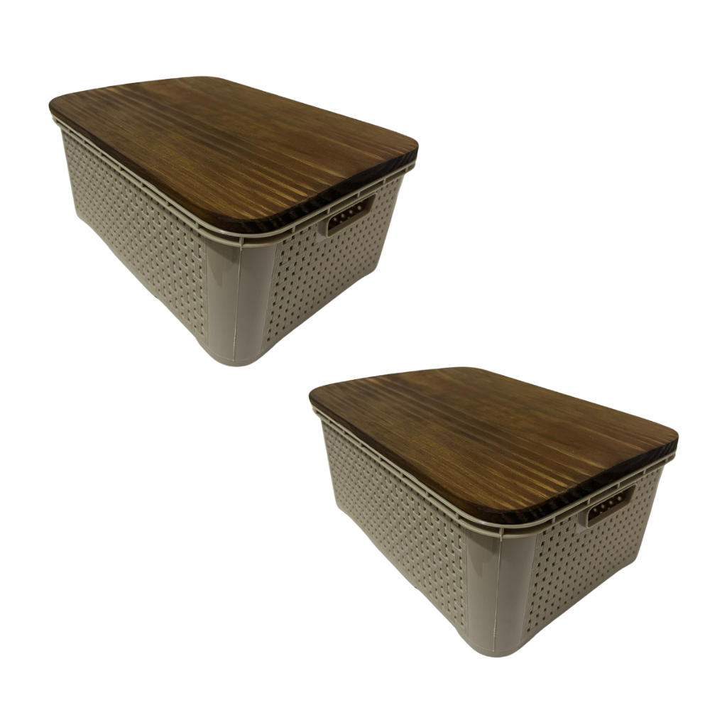 Kit com 2 Caixas Organizadoras Média Rattan 10 Litros Com TAMPA DE MADEIRA PINUS