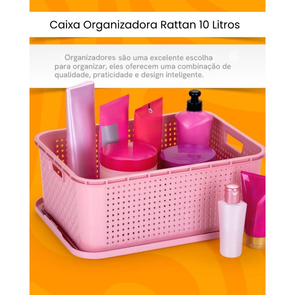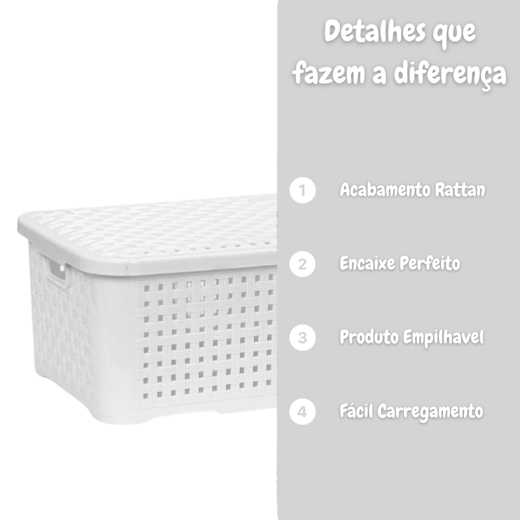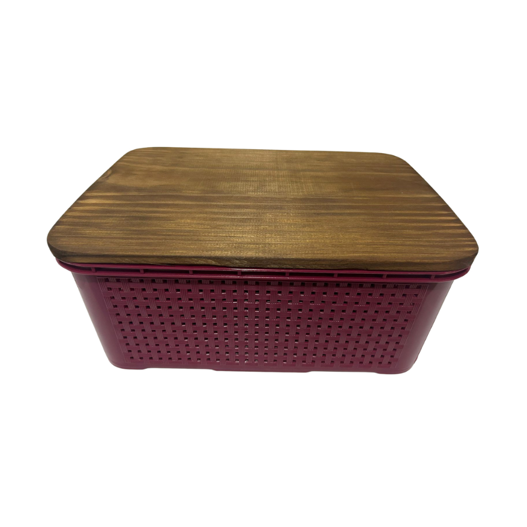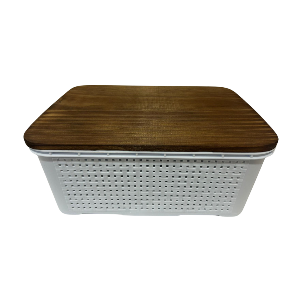 Kit com 2 Caixas Organizadoras Média Rattan 10 Litros Com TAMPA DE MADEIRA PINUS