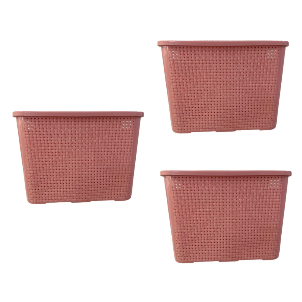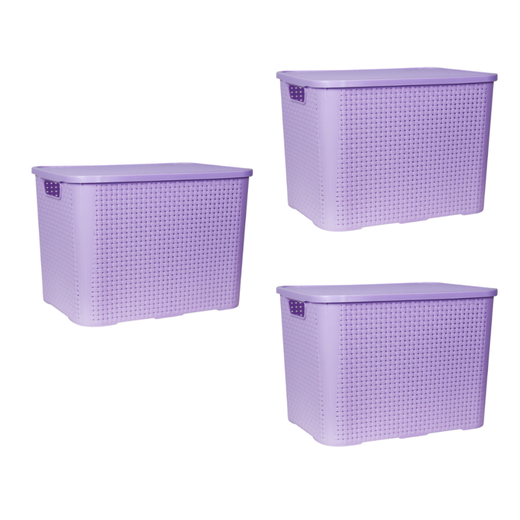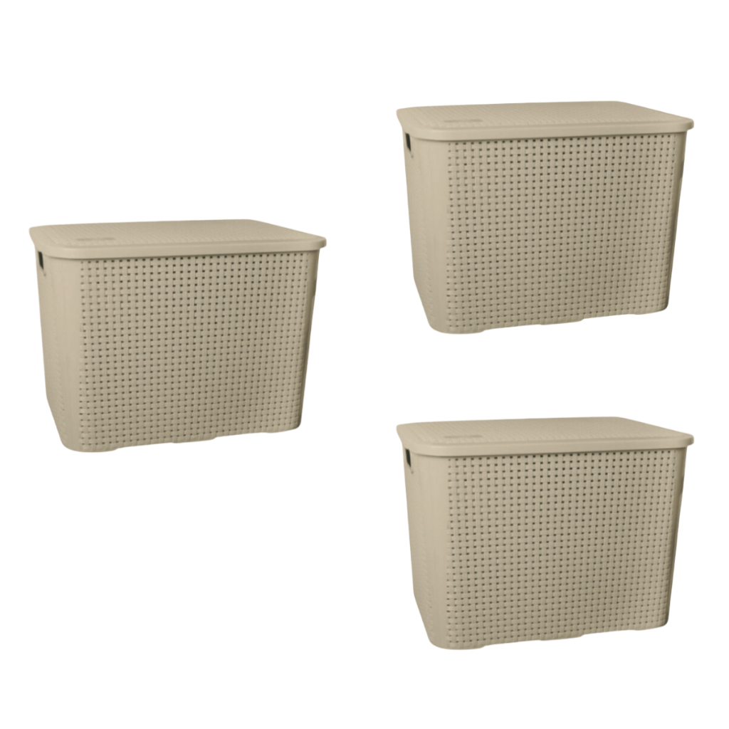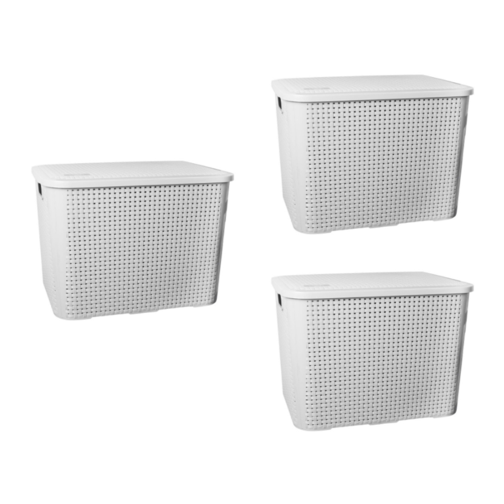 Kit com 3 Caixas Organizadoras Grande Rattan Com Tampa 26 Litros