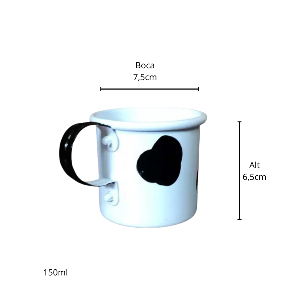 KIT 10 Canecas MINI 150ML C/ Mancha Vaca