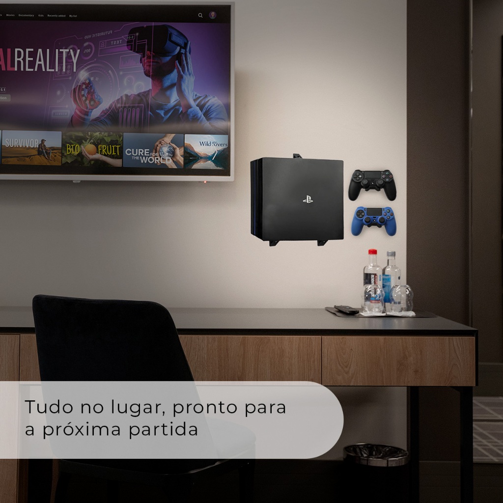 Kit de Suportes De Parede Para Console Playstation 4 PRO e 2 Suportes Para Controles PS4