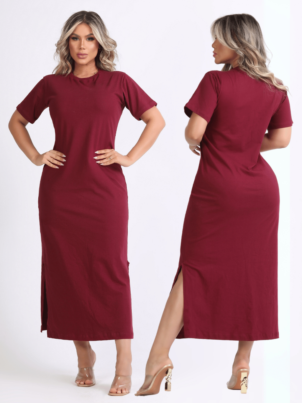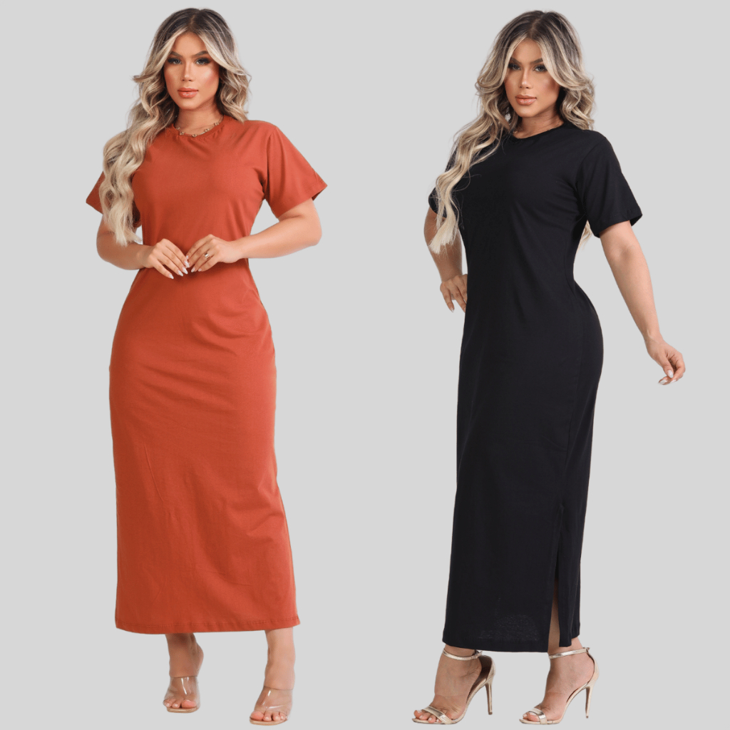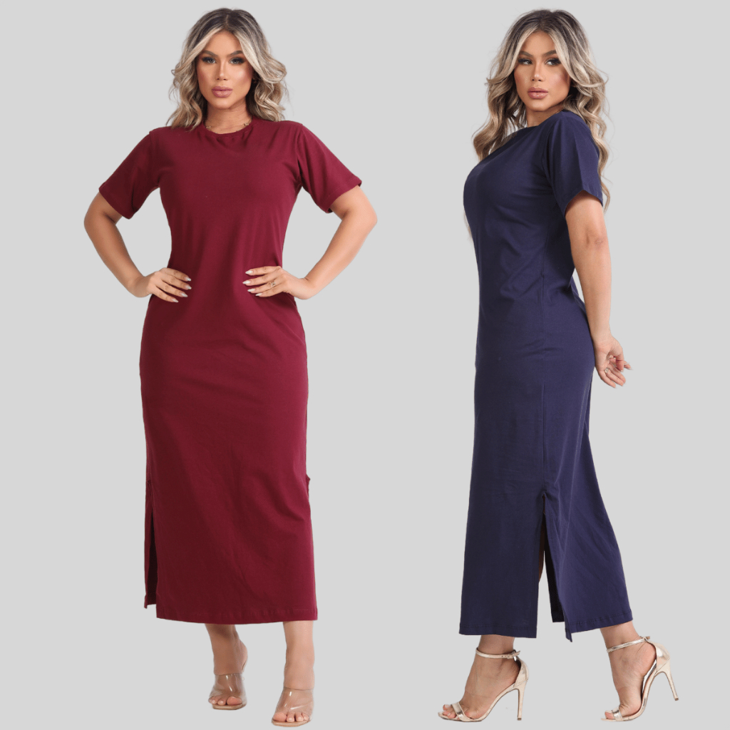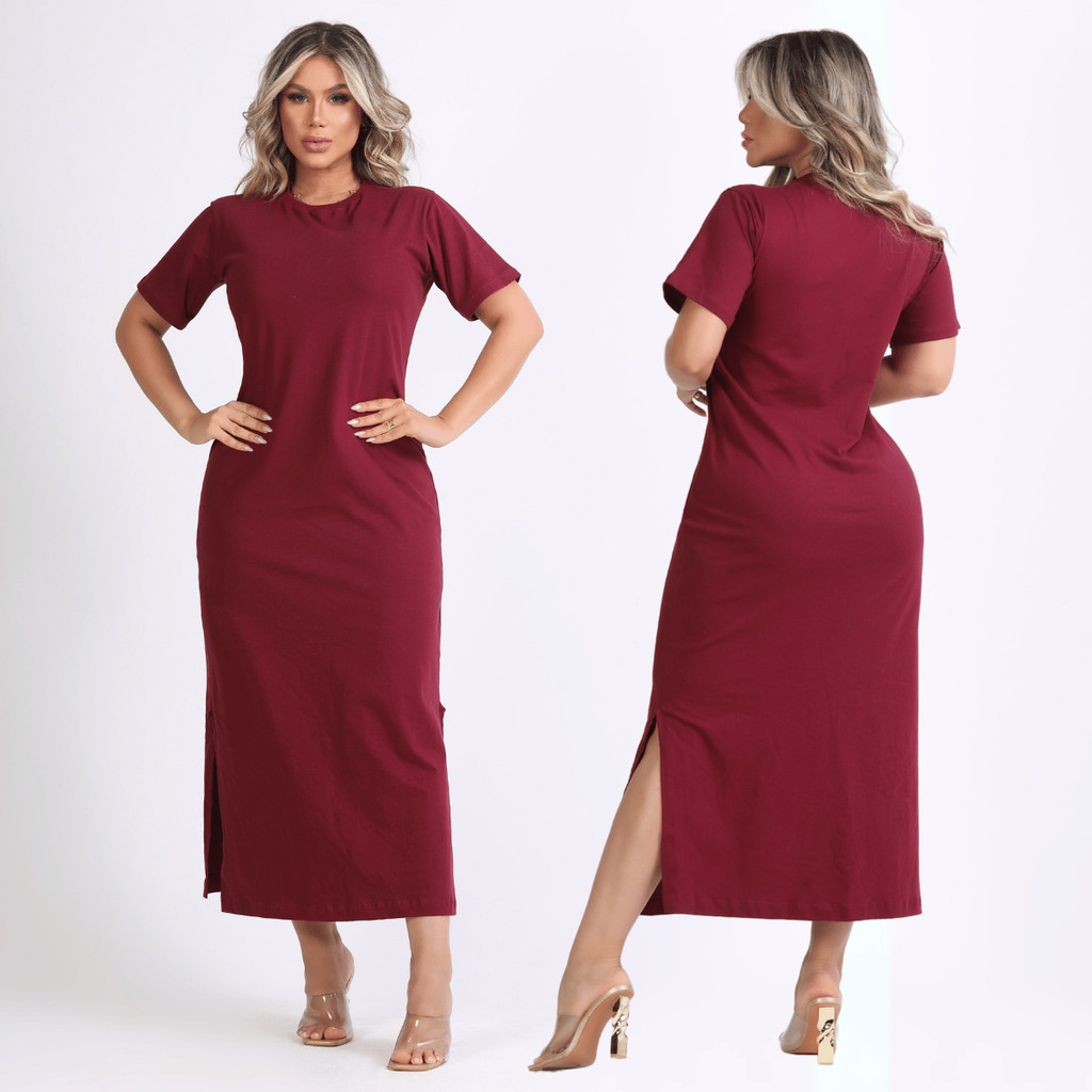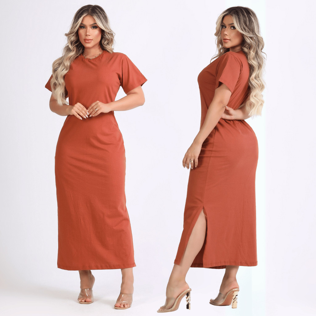 Vestido Feminino Fenda Lateral 100% Algodão Moda Básica Casual Elegante 38 ao 46 Midi Social Oferta
