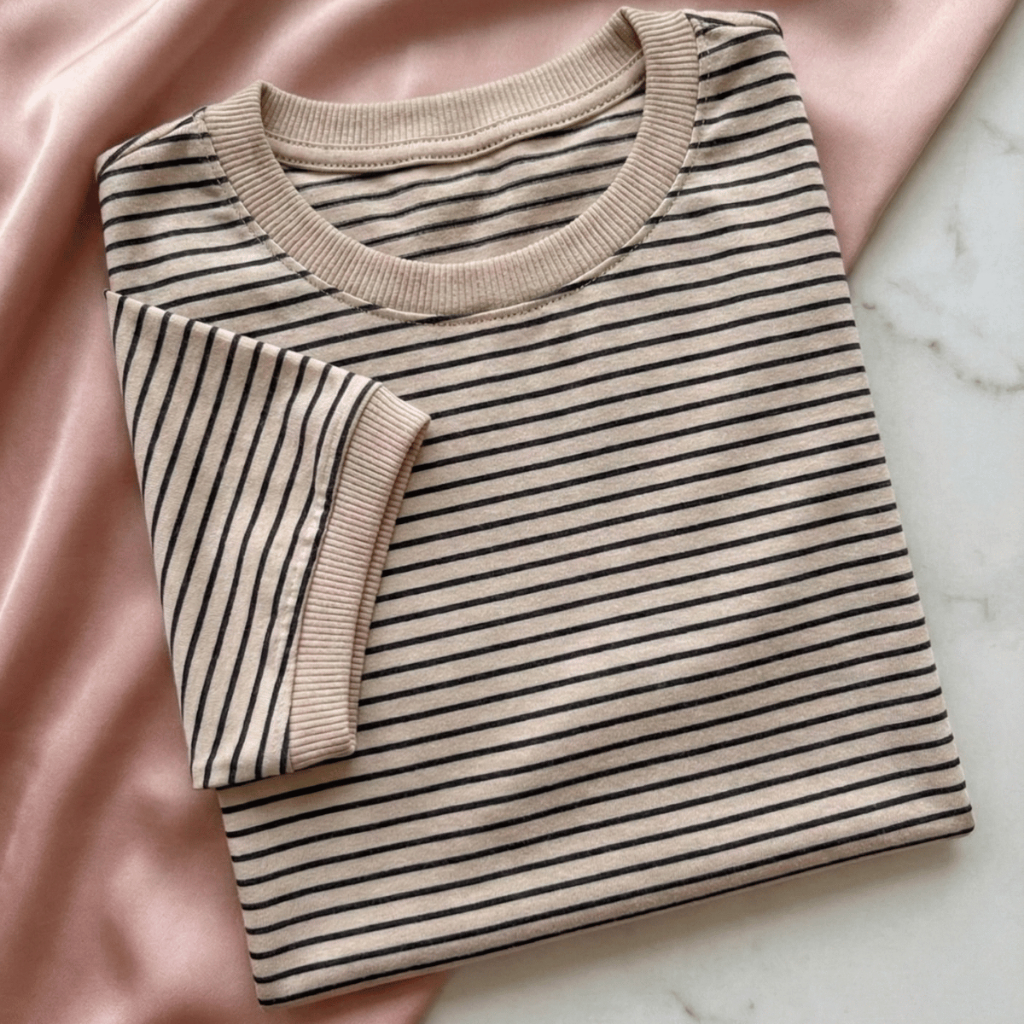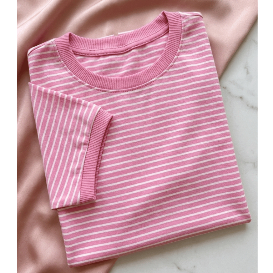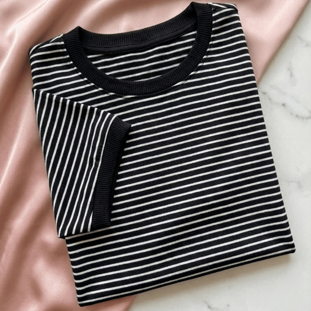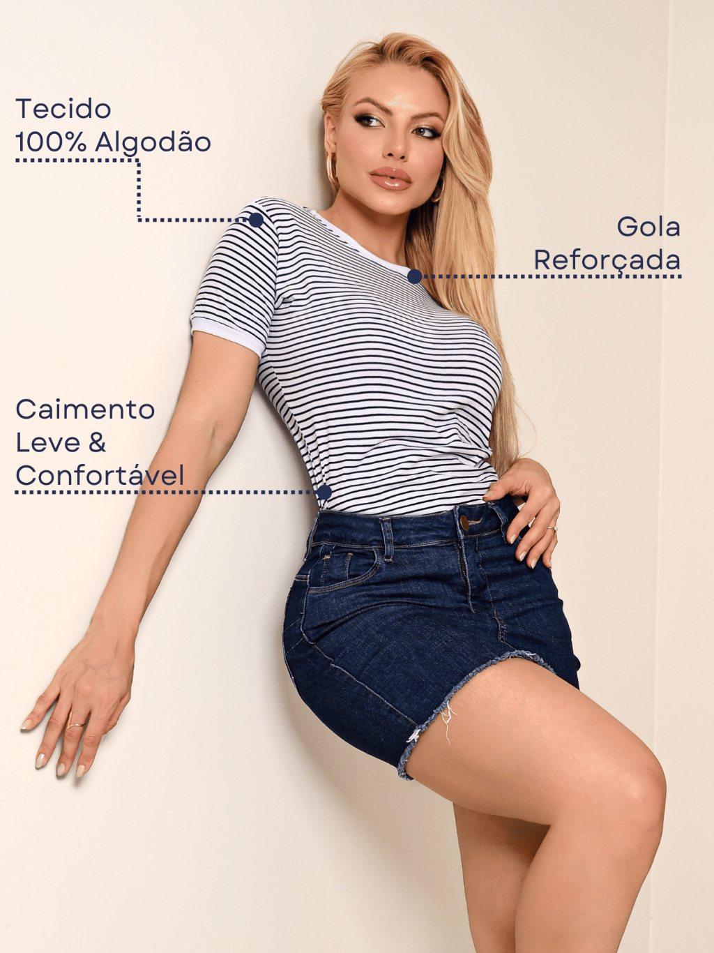 T-shirt Feminina Básica Casual Blusa Manga Curta Listrada P ao GG Camiseta Gola Reforçada Confort