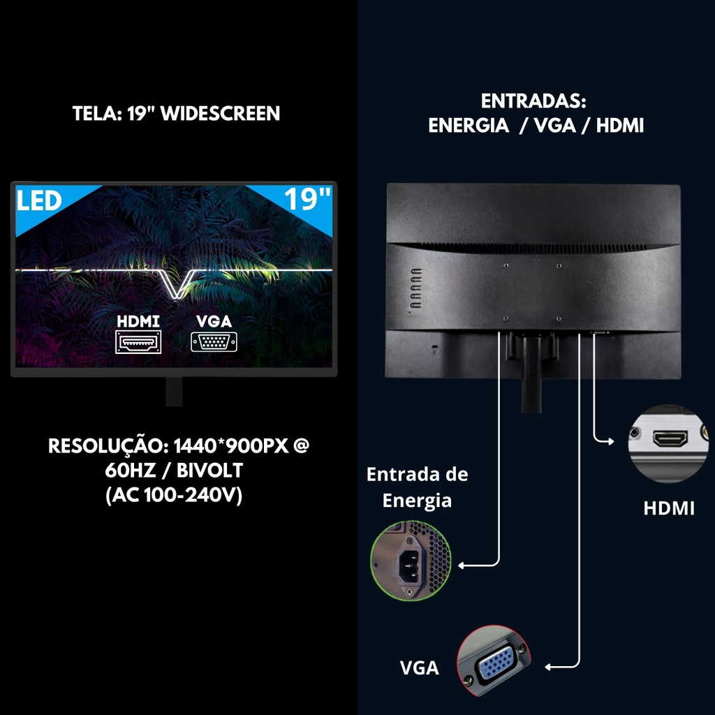 Computador Pc Completo Intel Core I7 16Gb SSD 240Gb Monitor 19