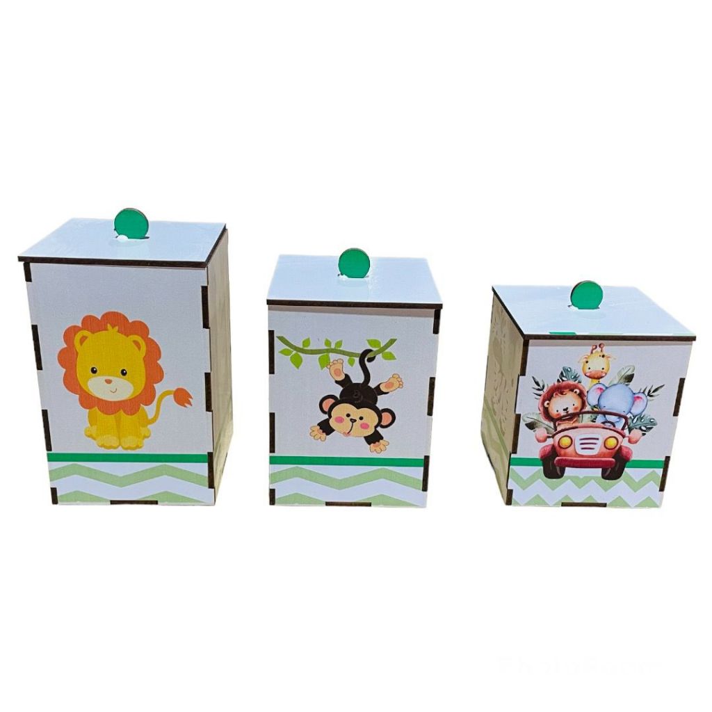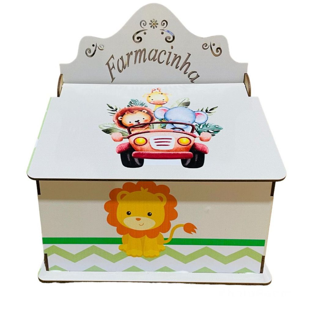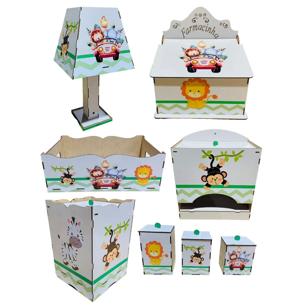 Farmacinha Kit Higiene Adesivado Decorado 8 Peças Safari Baby Decoração Quarto Trocador Bebê