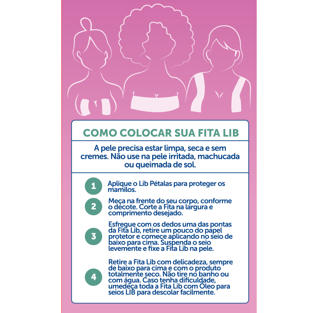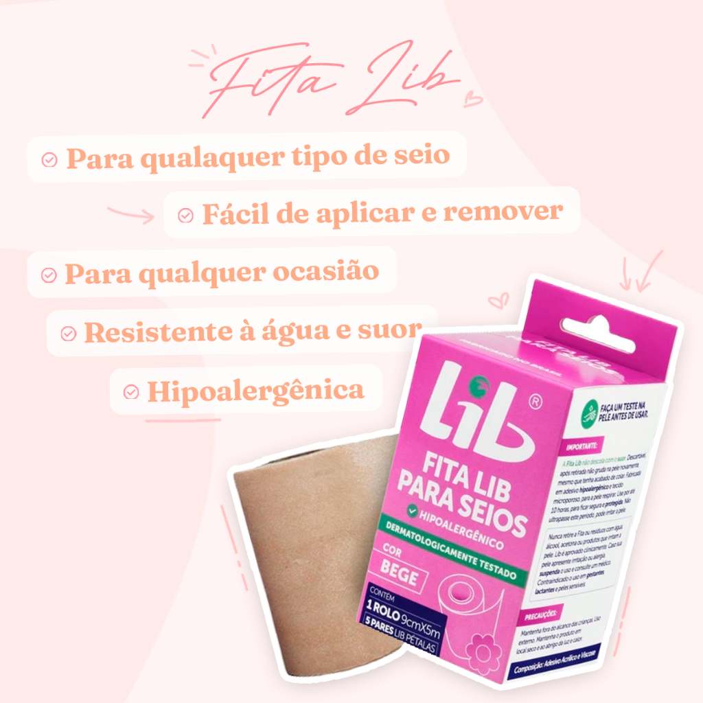 Fita Lib Sutiã Adesivo Invisível para Seios 9cm X 5m + 5 pares de Lib Pétalas