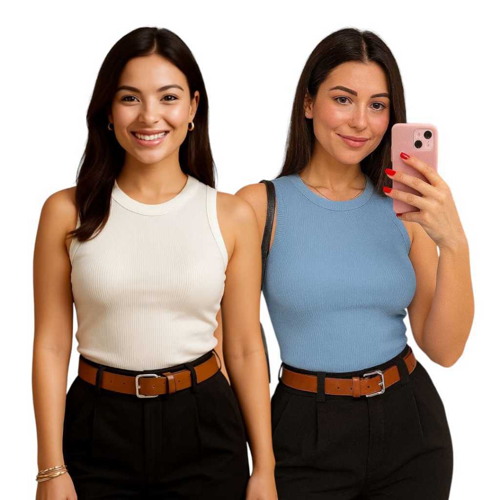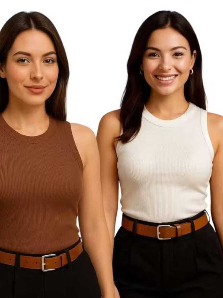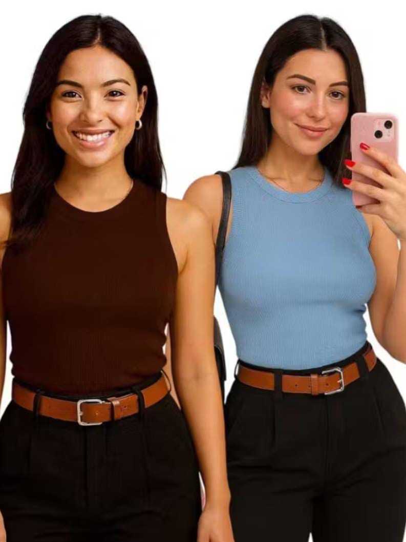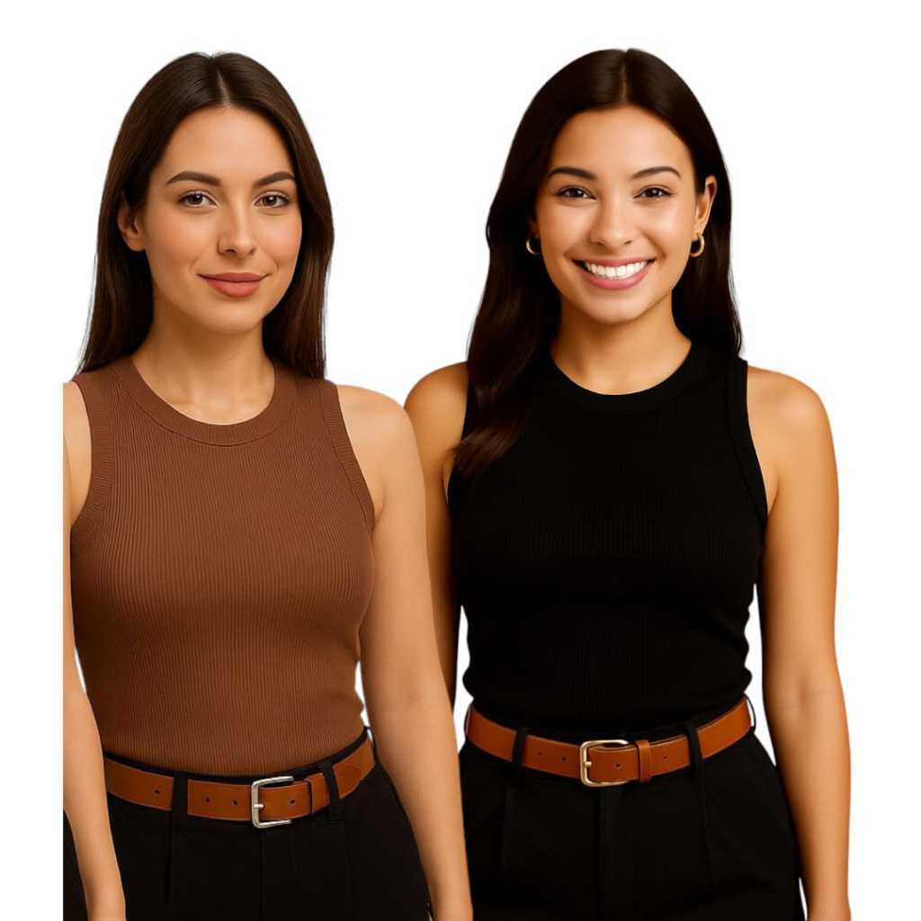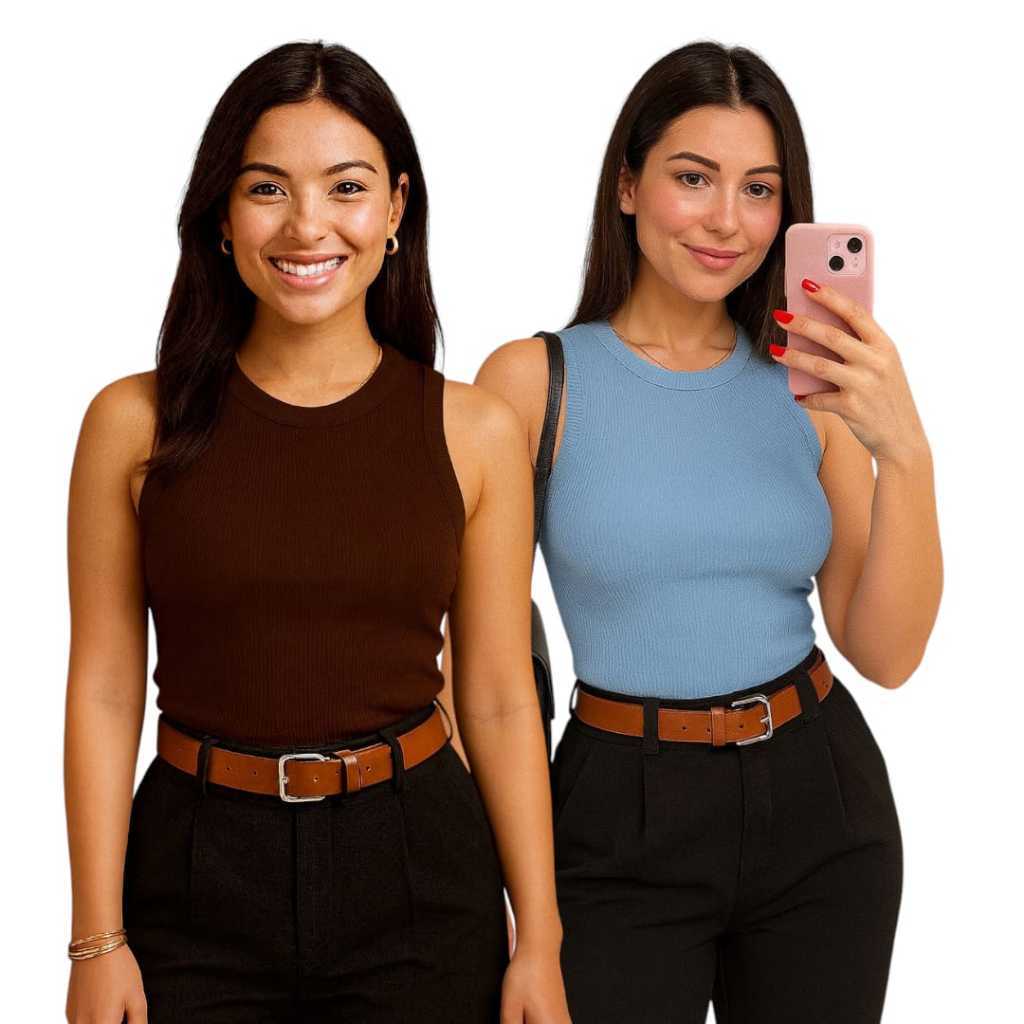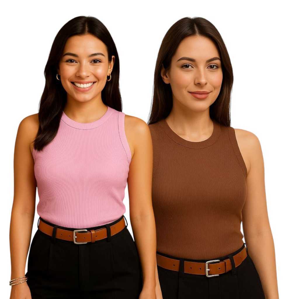 Kit 2 Regata Canelada Anarruga Regatinha Feminina Verão Casual Confortável Minimalista Look Feminino