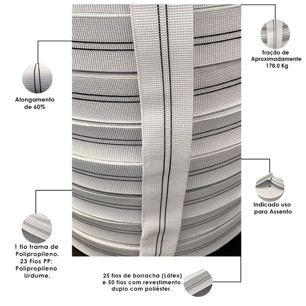 Novo Percinta Elástica 20 Metros 5cm Largura Sofa Cadeira Poltronas
