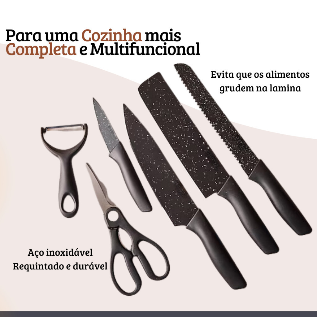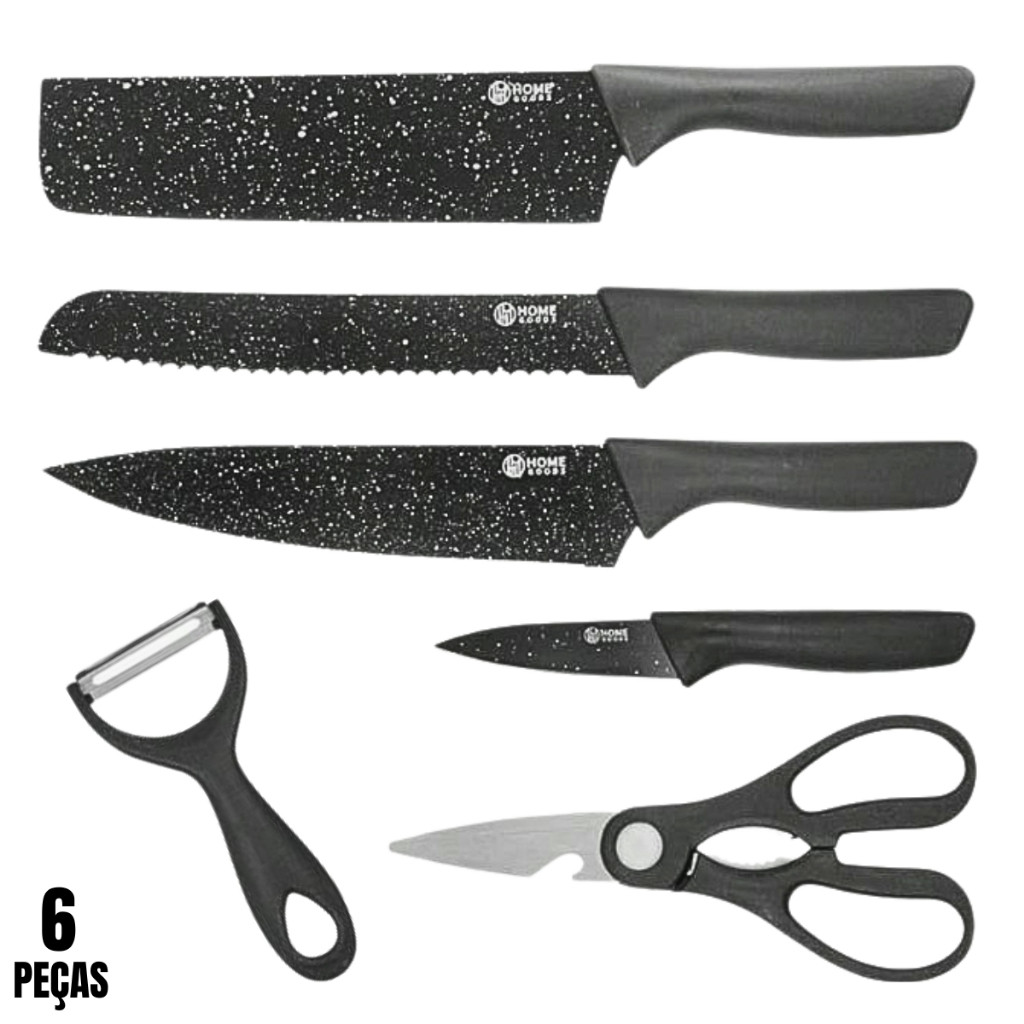 Jogo De Facas Inox Descascador E Tesoura 6 Peças Rosa
