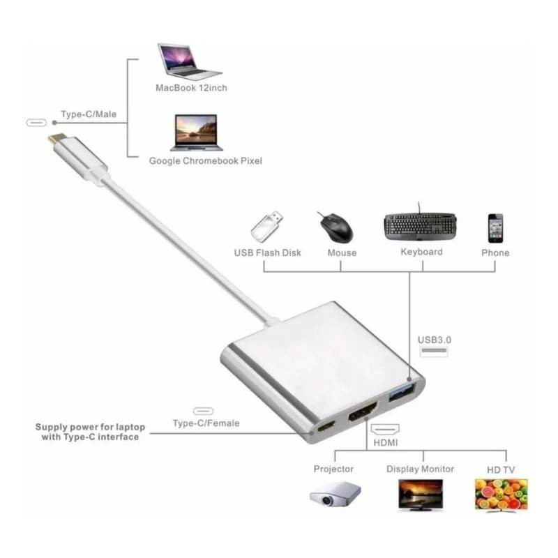 HUB 7 em 1 Tipo C USB HDTV 4K 30Hz Vídeo USB 3.0 USB 2.0 SD TF Cartão Slot Leitor de Dados USB-C