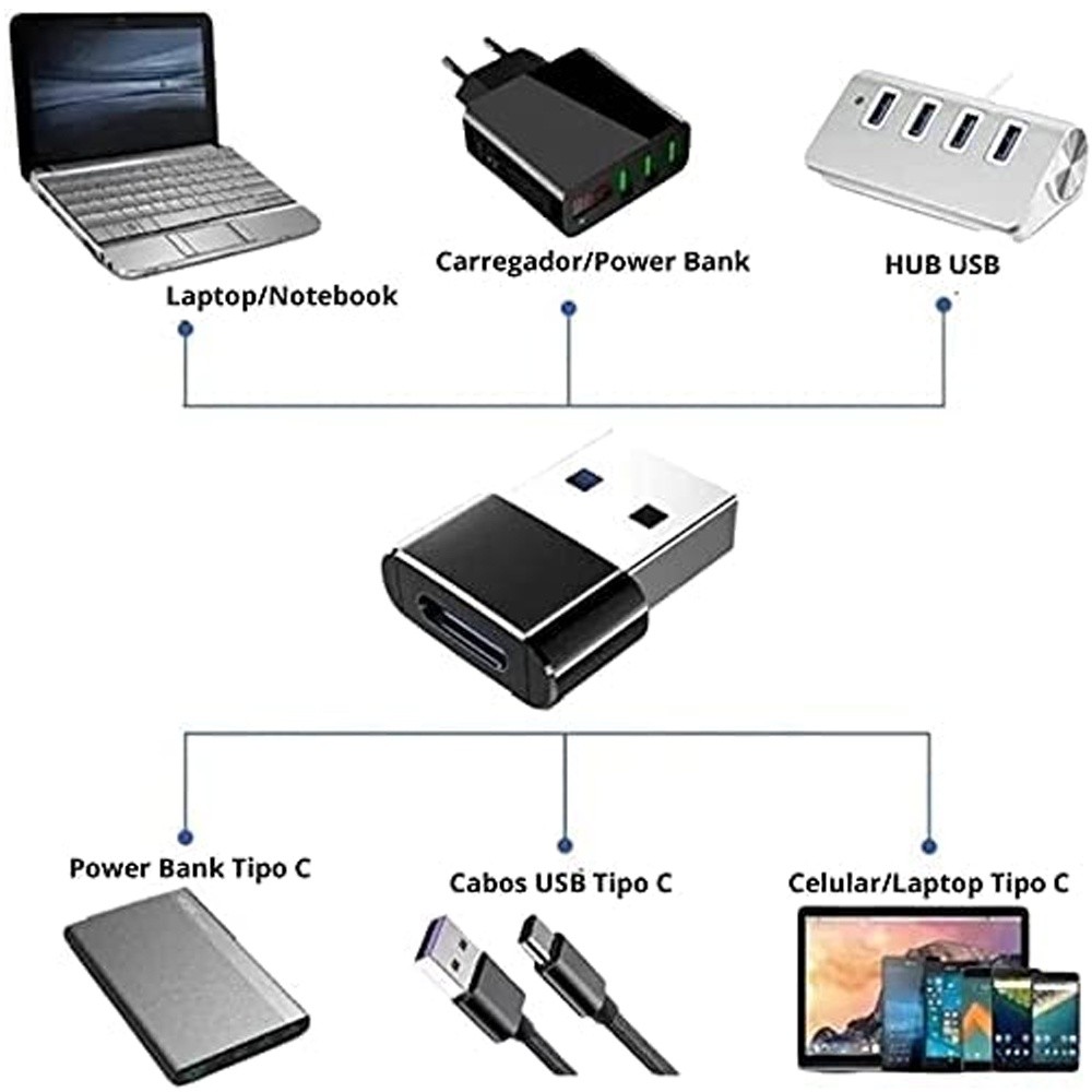 KIT com 2 Adaptadores USB Tipo C para USB Várias Cores Envio Imediato Ótima Qualidade