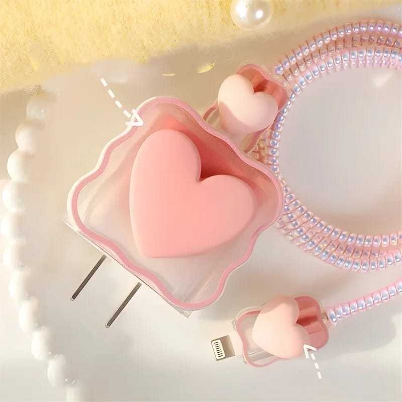 Capa Protetora de carregador cabo e fonte decoração para Carregador IPHONE 18 e 20w tampa CORAÇÃO