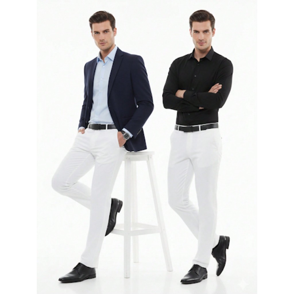 KIT 2 Peças - Calça Social Masculina Slim Branca Calça de Terno Tecido Panamá Calça Formal Alfaiataria Homens
