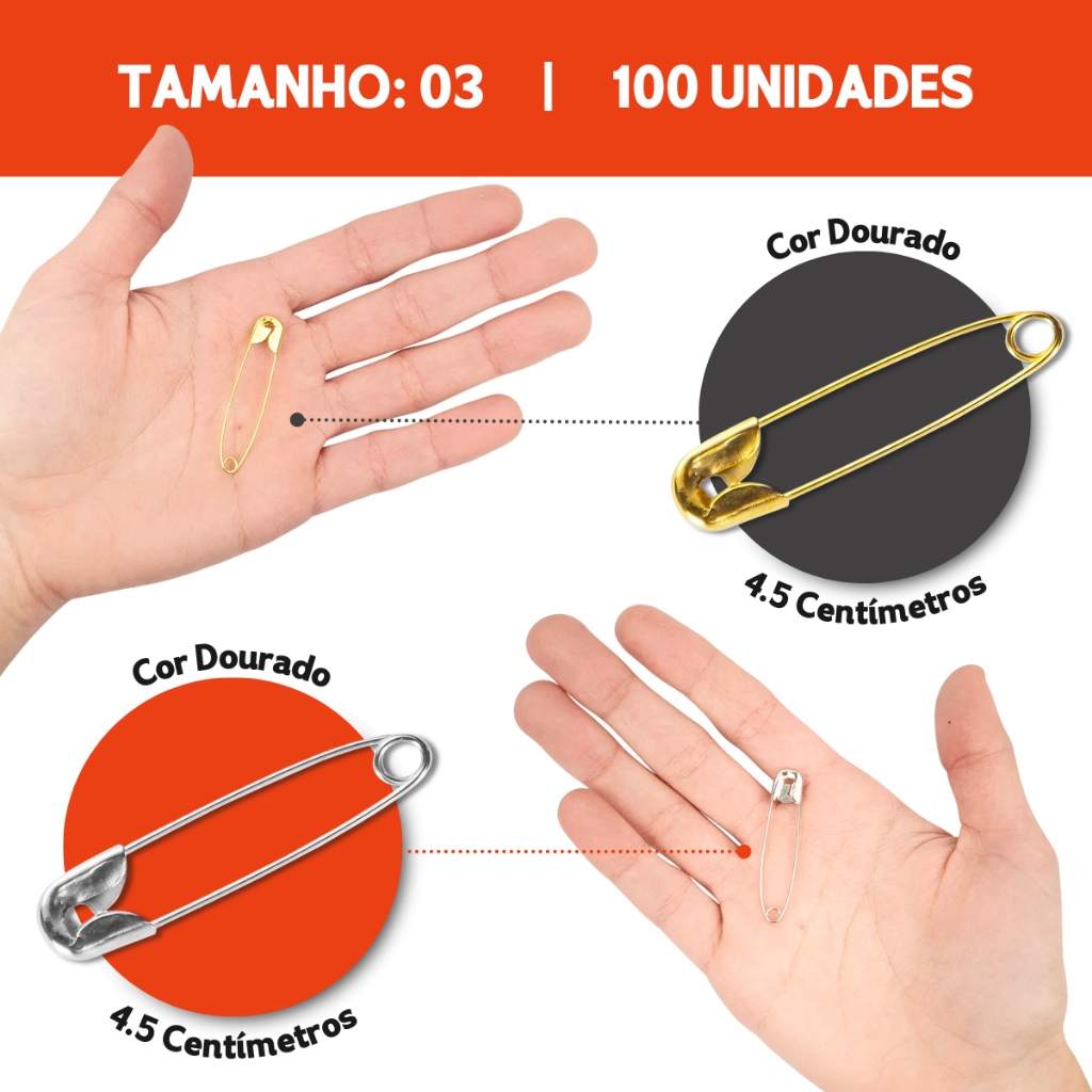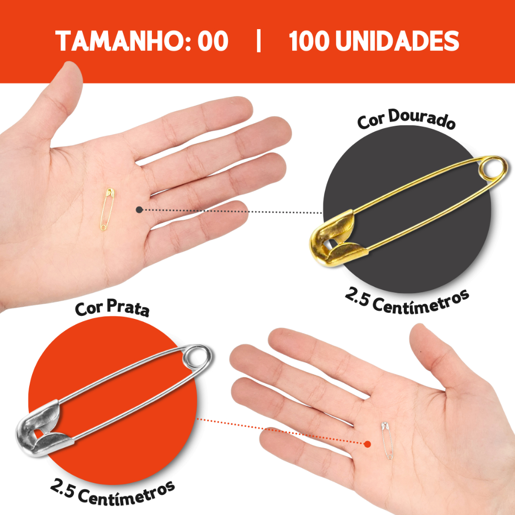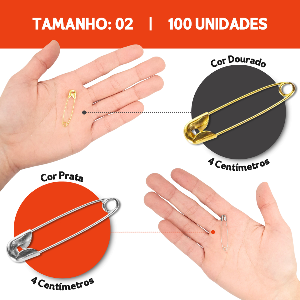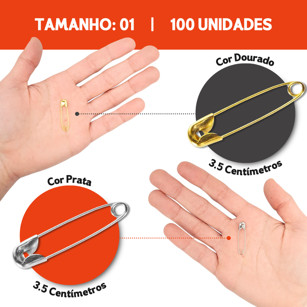 Alfinete de Segurança Ouro/Prata - Pacote com 100/50 Unidades - Aero