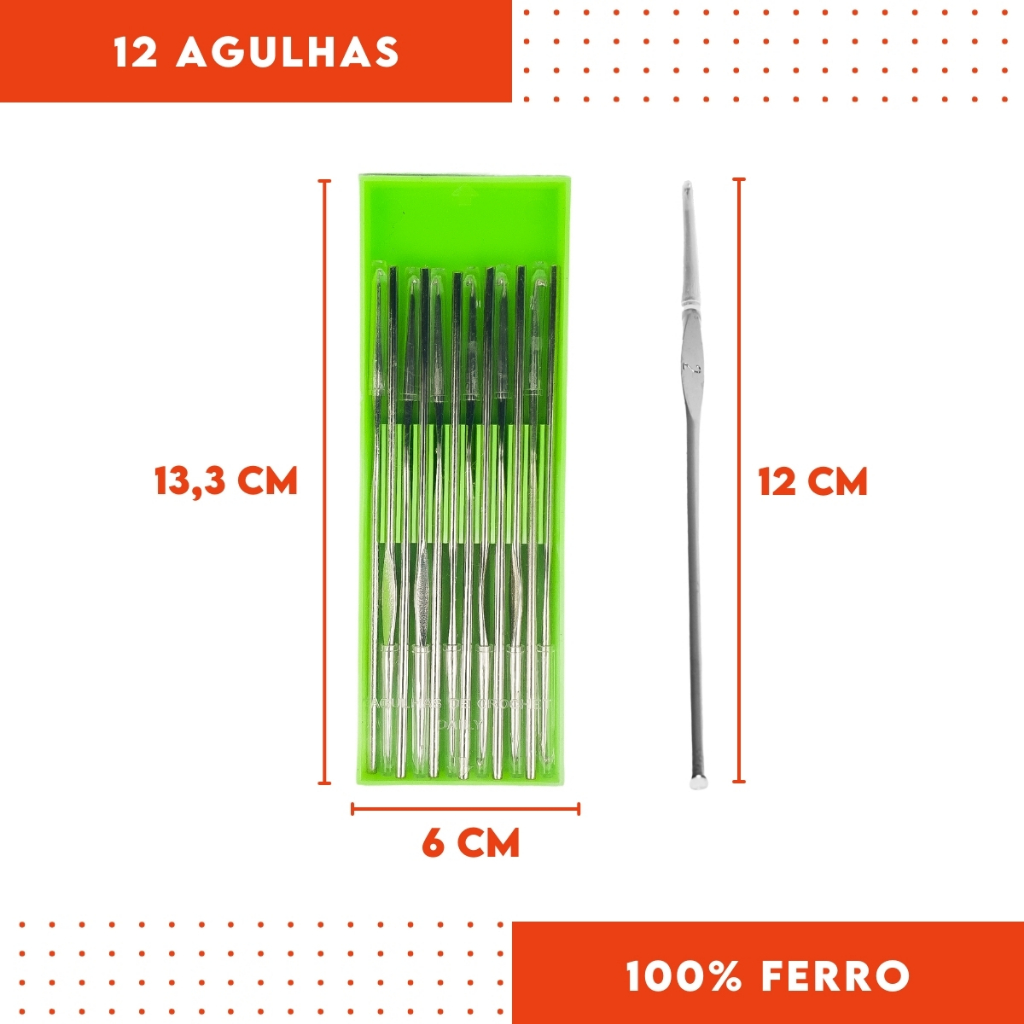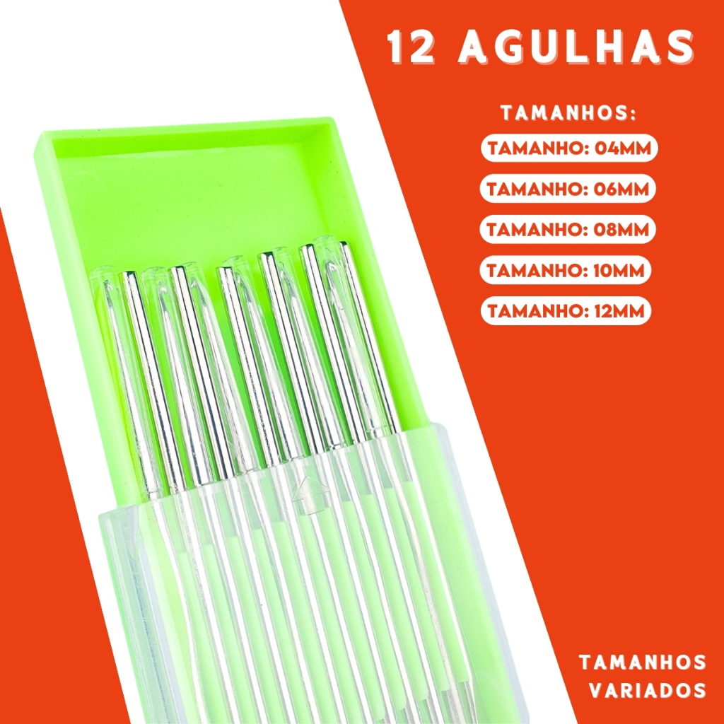 Kit Agulhas de Crochê - Estojo com 12 Unidades Variados - Aero